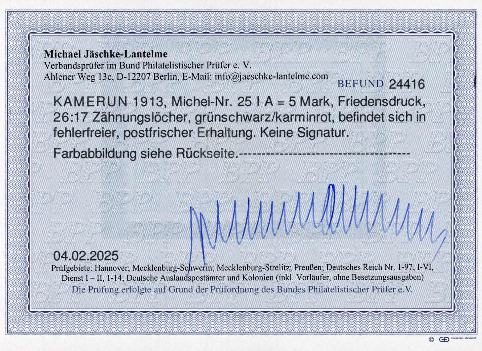 Get Market Data for [German Colonies Michel: 25 I A] Visual Pricing Guide Sample Census |