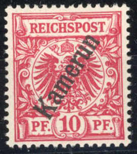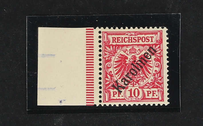 1899, 10 Pfg. mit diagonalem Aufdruck "Karolinen", postfr. Einzelwert, farbfrisch und gut gezähnt, sign. R. Steuer BPP, einwandfrei (ME 200,-)