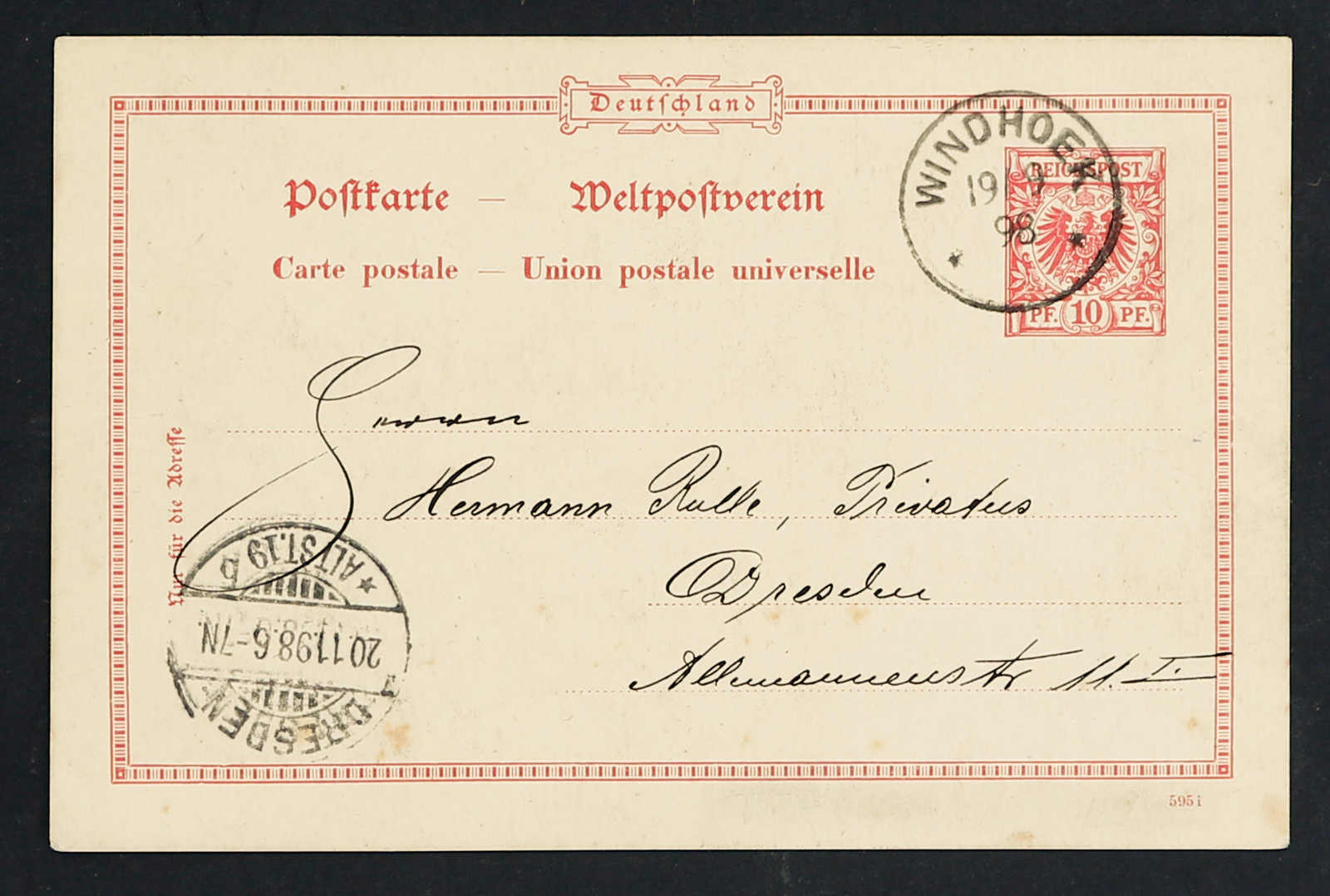 "WINDHOEK 19.9.98", klarer Abschlag als Aufgabestempel auf Mitläufer-Ganzsache zu 10 Pfg. (P 25), adressiert nach Dresden, einwandfrei (Image)