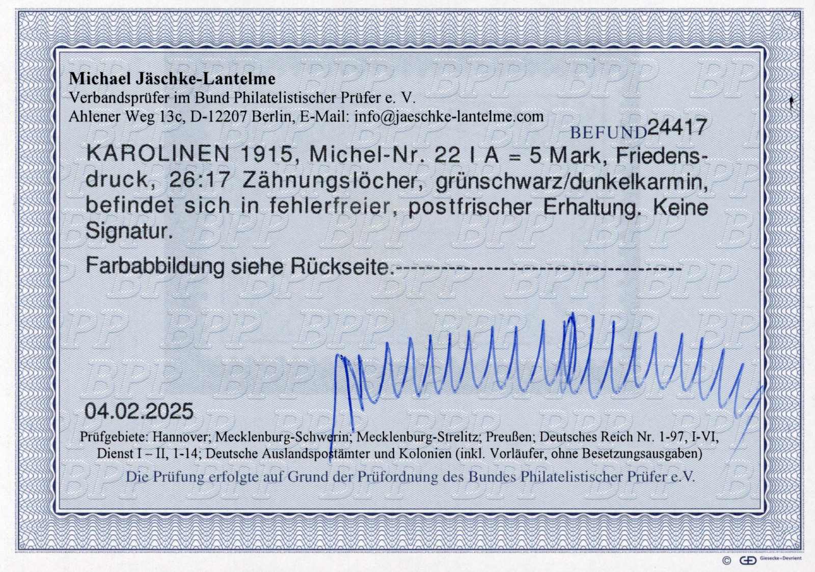 Get Market Data for [German Colonies Michel: 22 (3) MeF] Visual Pricing Guide Sample Census