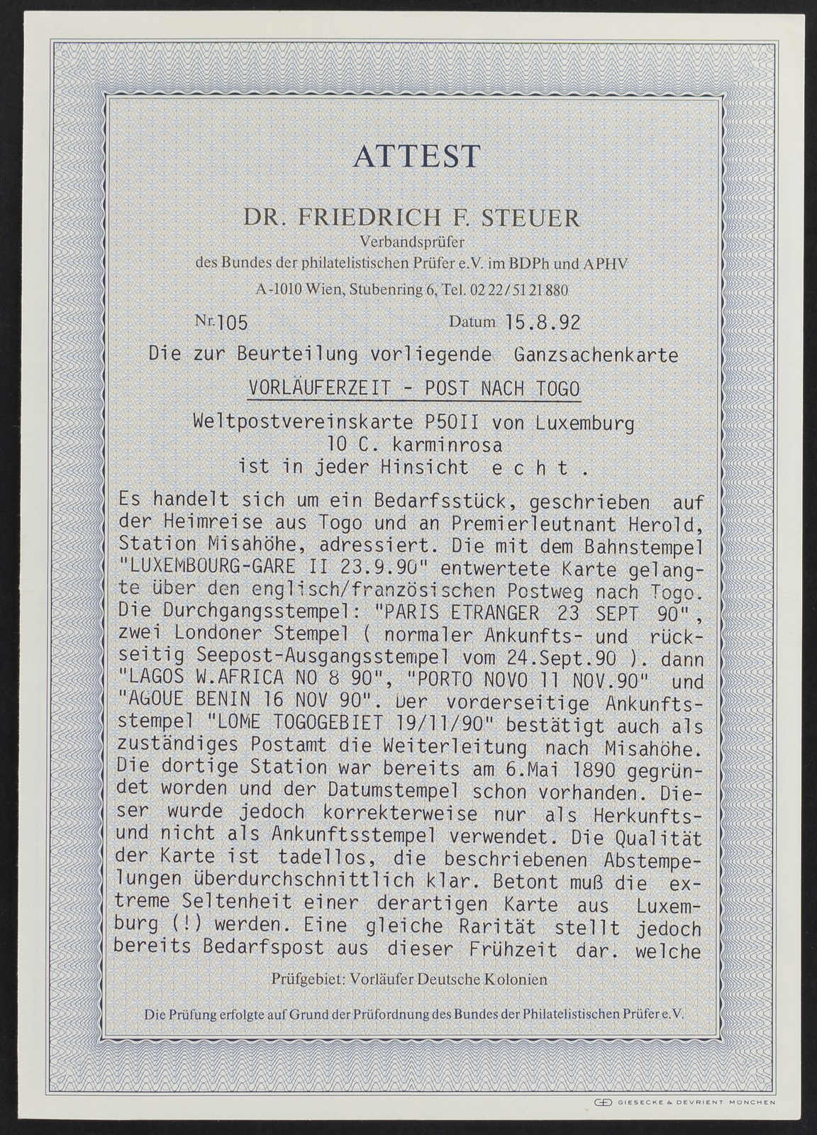 Get Market Data for [German Colonies Michel: P 50 Luxemb.] Visual Pricing Guide Sample Census