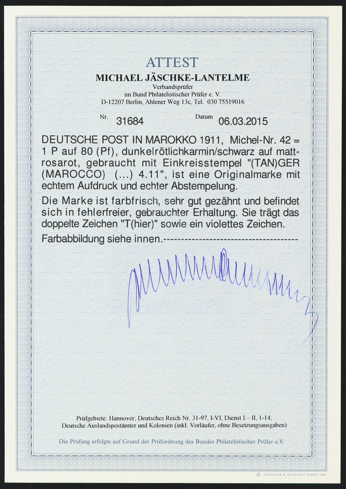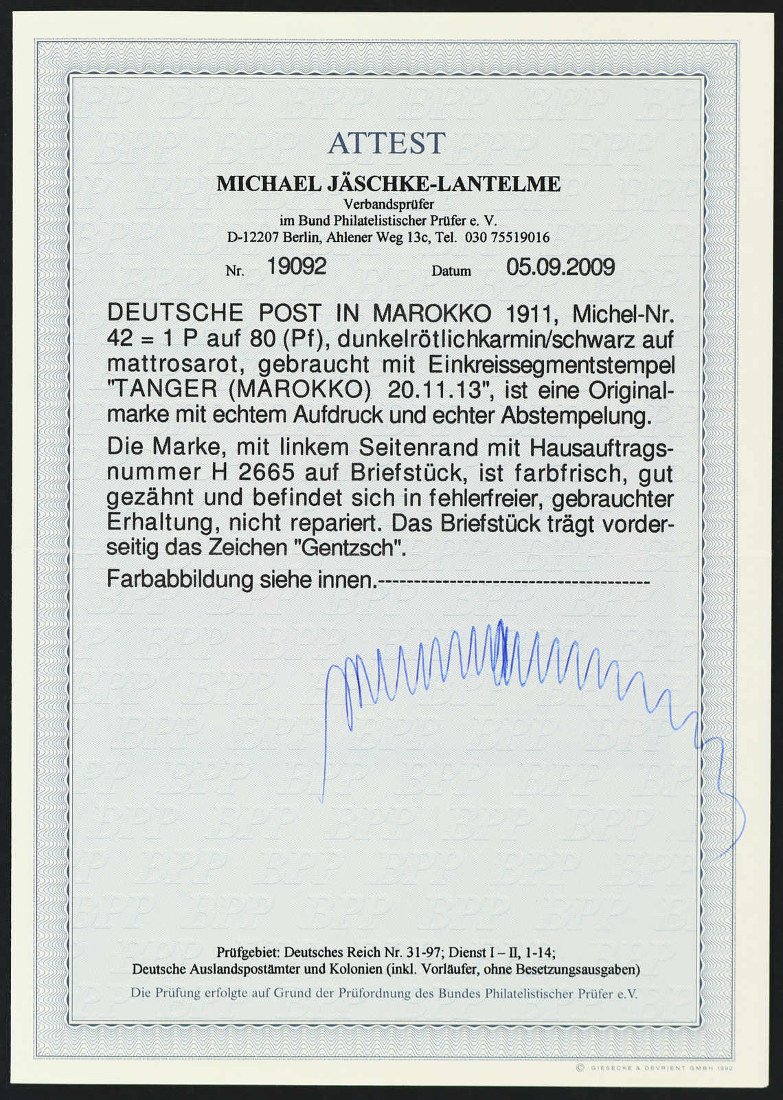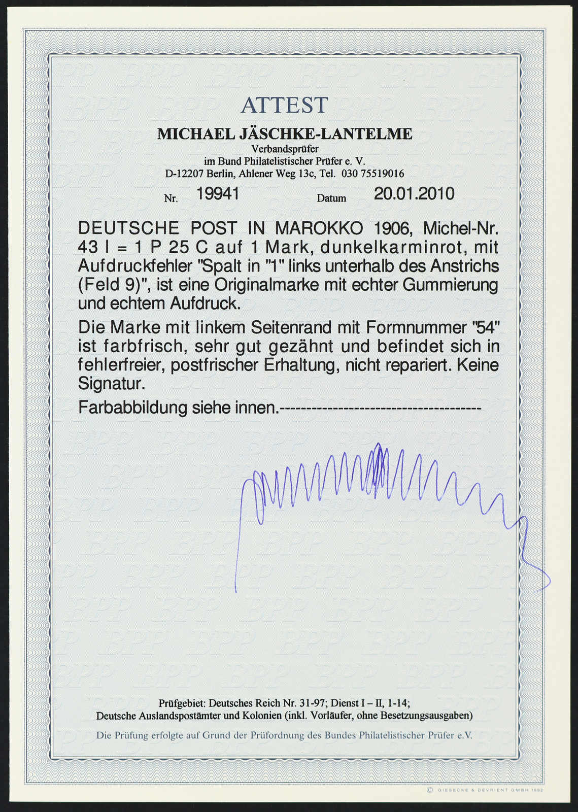 Fotoattest Jäschke-Lantelme BPP (ME -,-) (Image) (imagea)