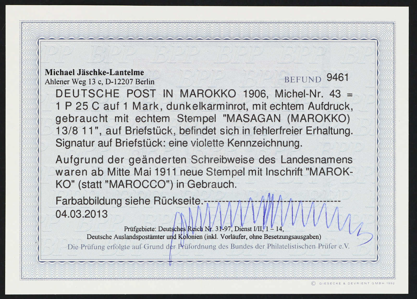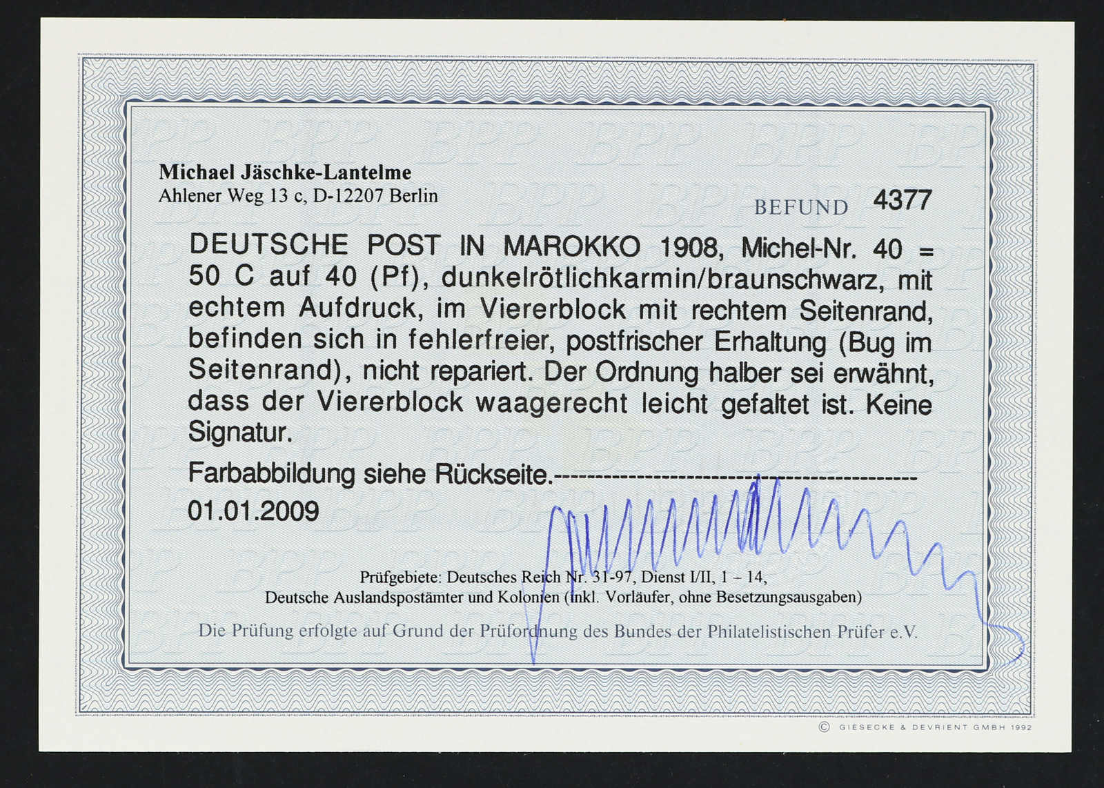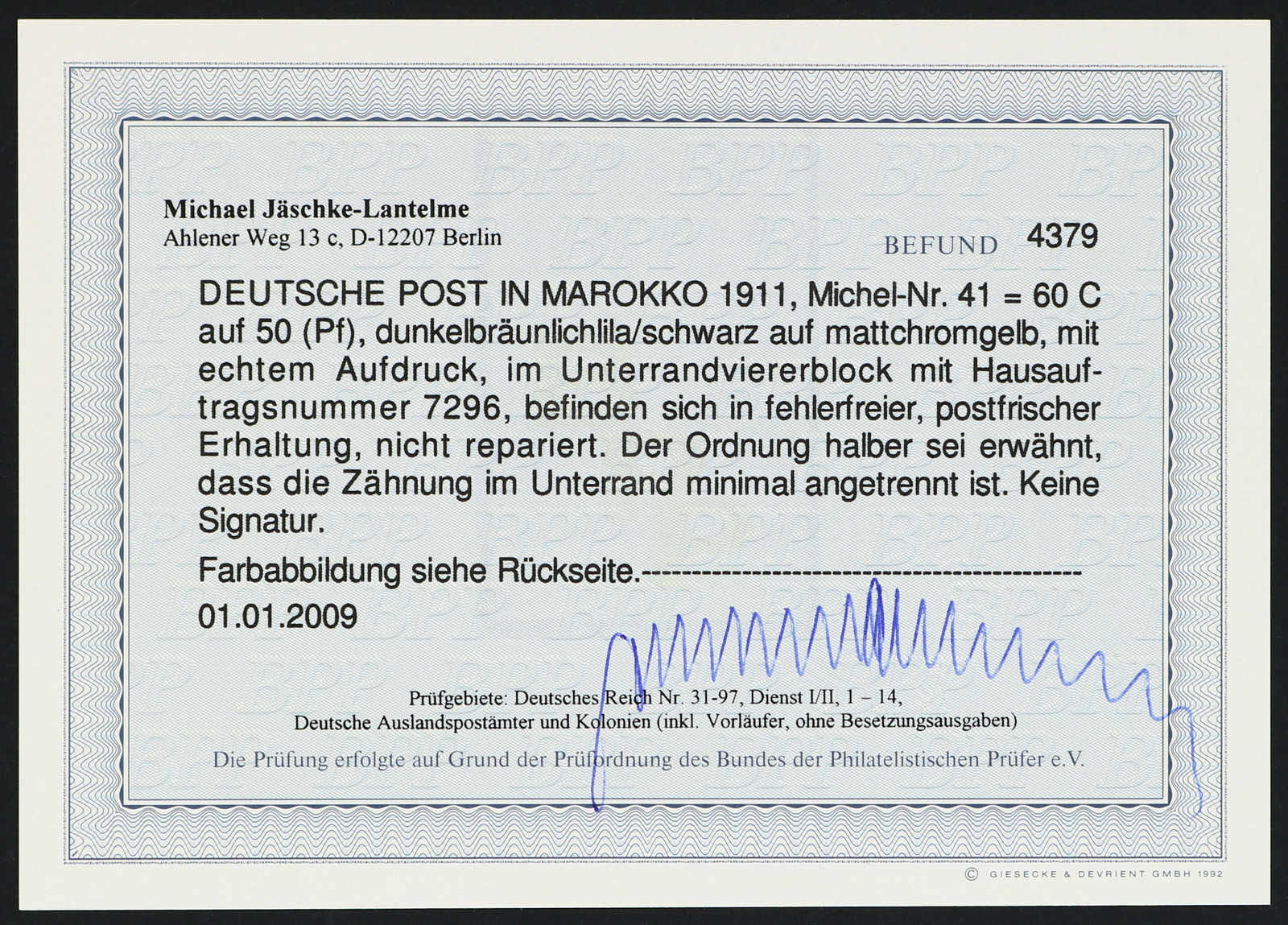 Fotoattest Jäschke-Lantelme BPP (ME -,-) (Image) (imagea)