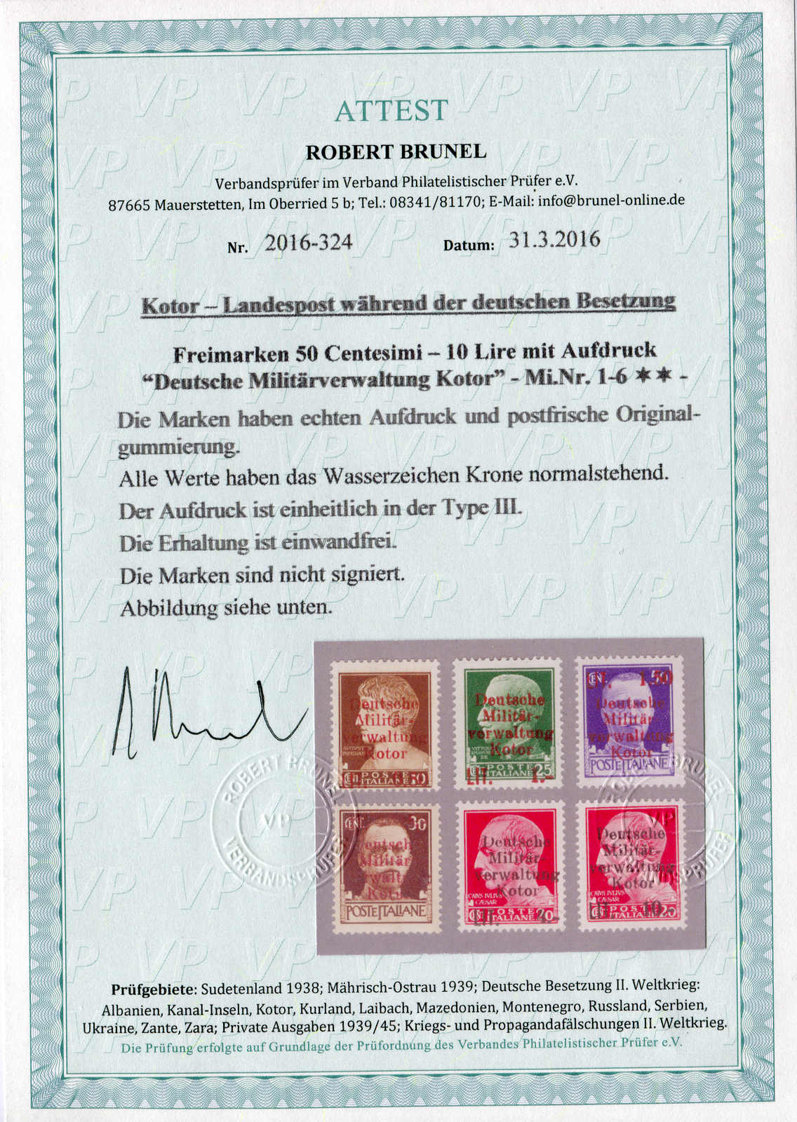 1944, 0,50-10 L. Freimarken, postfrisch ohne Signatur, einwandfrei, Fotoattest Brunel 03/2016 (ME 1.100,-) (Image) (imagea)