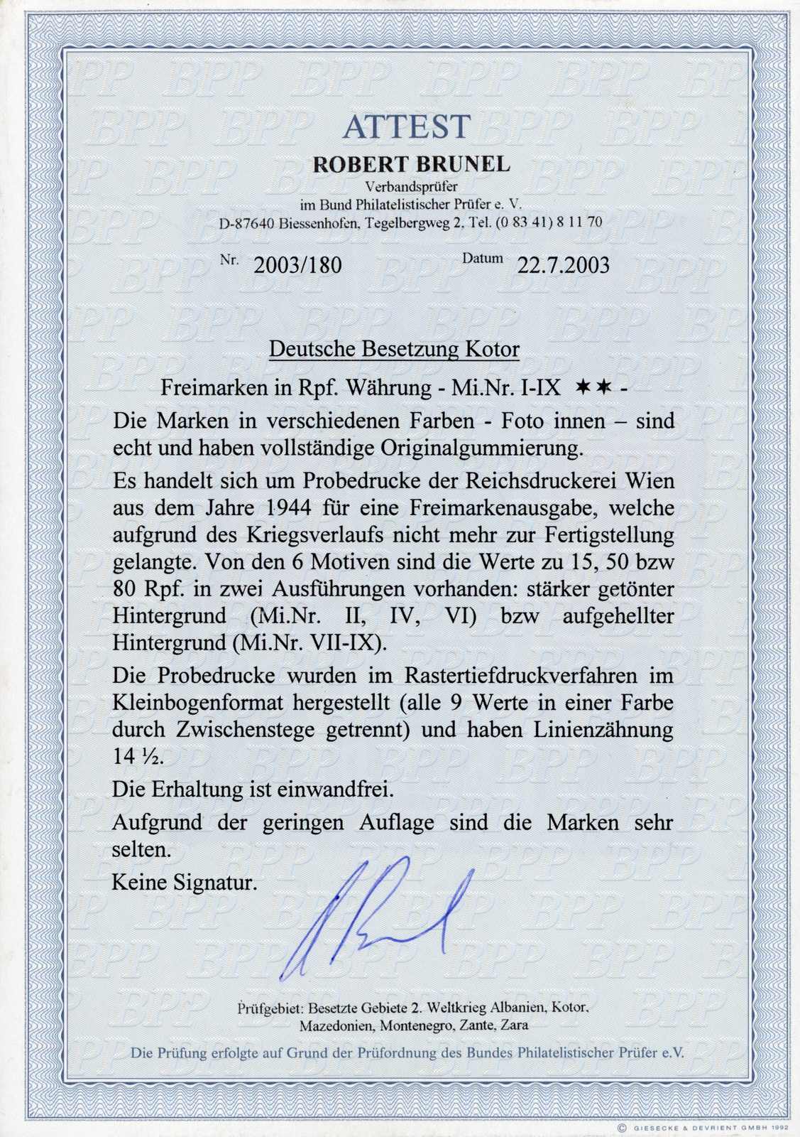 1944, 10 bis 80 Pfg. Freimarkenausgabe in verschiedenen Farben, nicht mehr zur Ausgabe gelangt, dabei 15, 50 und 80 Pfg. in beiden Ausführungen (dunkler und heller Hintergrund), postfrisch, einwandfrei und unsigniert, geringe Auflage und