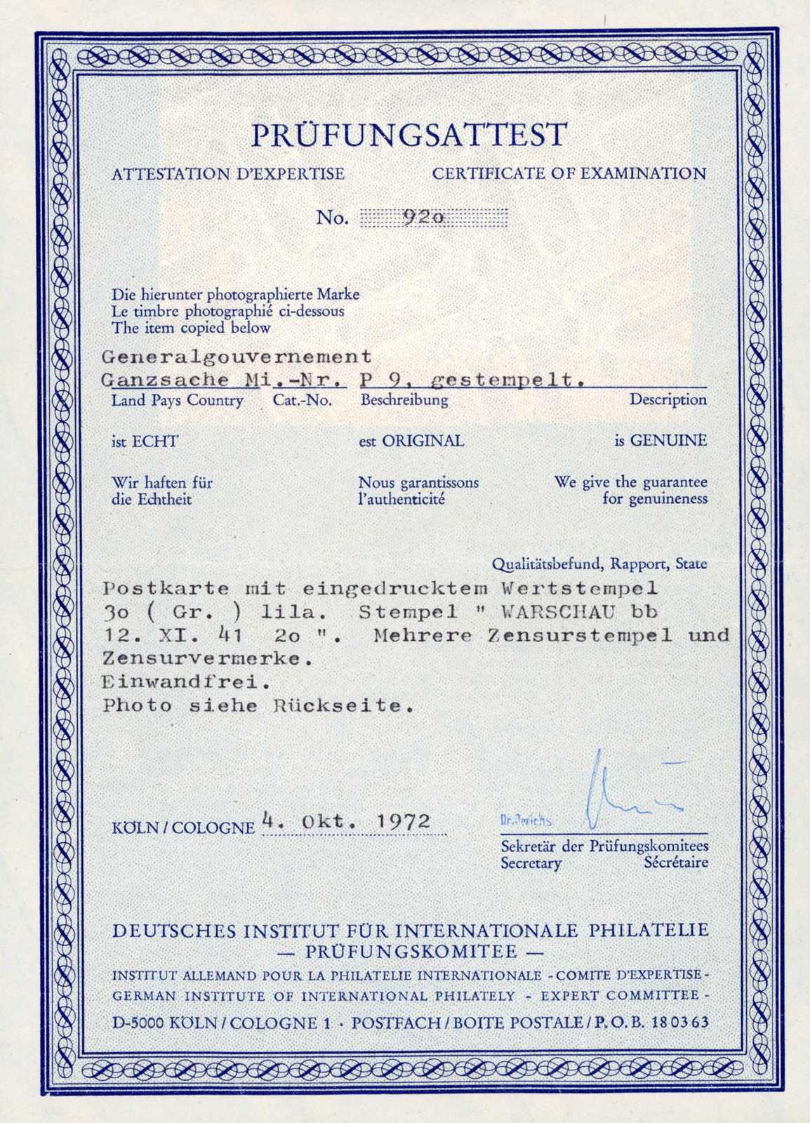 der Postgeschichte des Generalgouvernements, aber auch der UPU! Ausführliches Fotoattest Schweizer BPP (09/2021) (Image) (imagea)