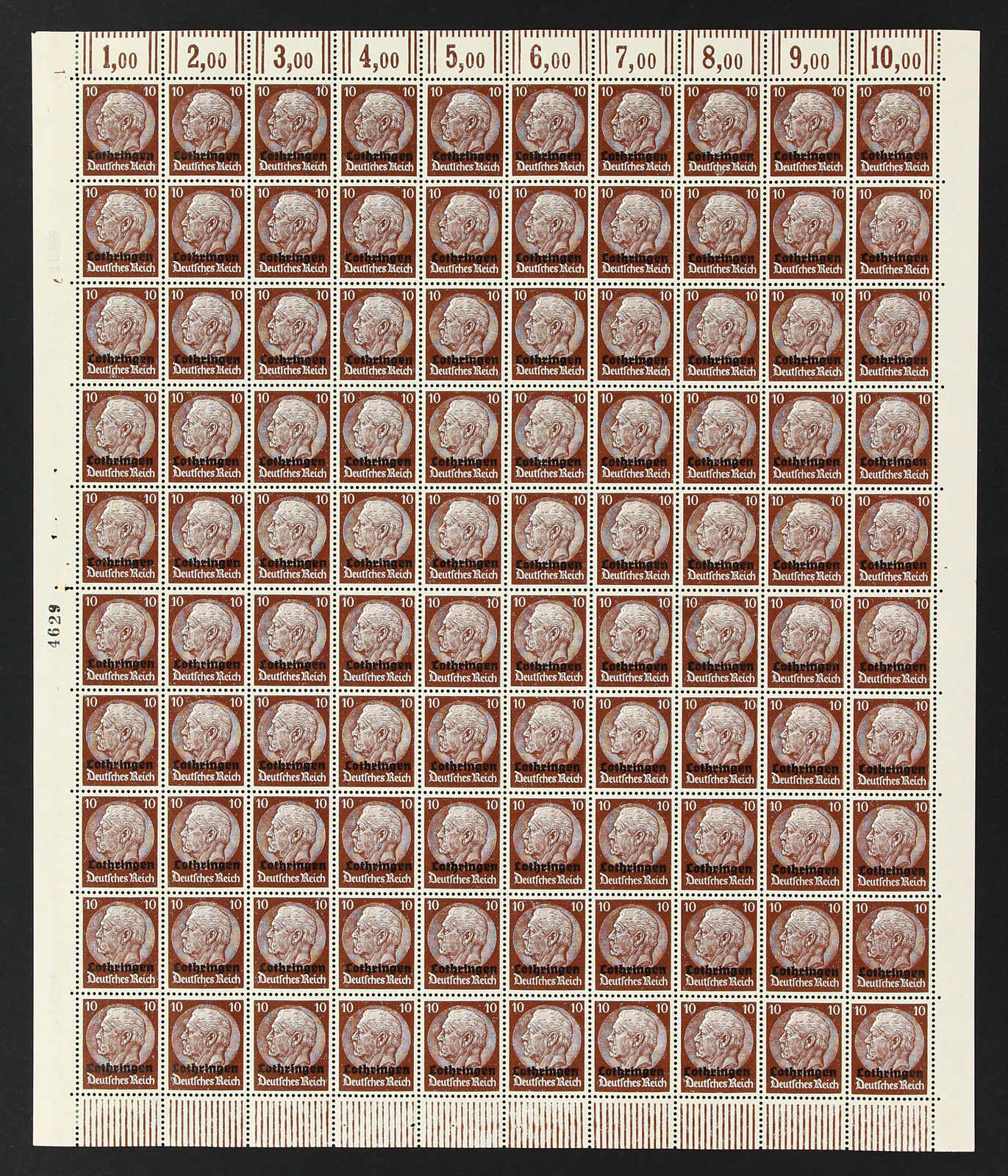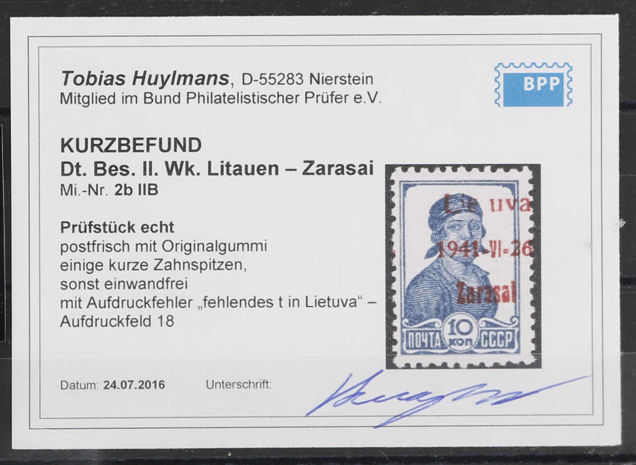 1941, 10 Kop. Werktätige, postfrischer Einzelwert mit waager. braunroten Aufdruck und dem Aufdruckfehler I "t in Lietuva fehlt", einige Zahnspitzen etwas verkürzt, sonst einwandfrei, Kurzbefund Huylmans BPP (ME ca. 450,-) (Image) (imagea)