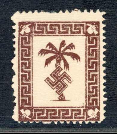 1943, Tunis-Zulassungsmarke für Feldpostpäckchen braun auf hellgraugelbem dicken Papier, ungebraucht ohne Gummierung, Zahnfehler, signiert (ME 200,- )