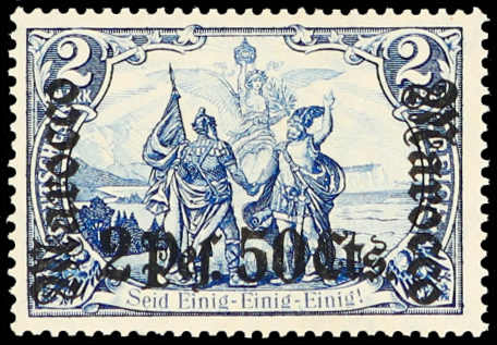 636 og Michel:44II image1906, 2 P. 50 C. auf 2 M. Aufdruckausgabe schwärzlichblau, mit Aufdruckfehler "langer Riss im linken M", ungebraucht, einwandfrei, Fotoattest Steuer BPP (ME 600,-) (Image) (imagea)