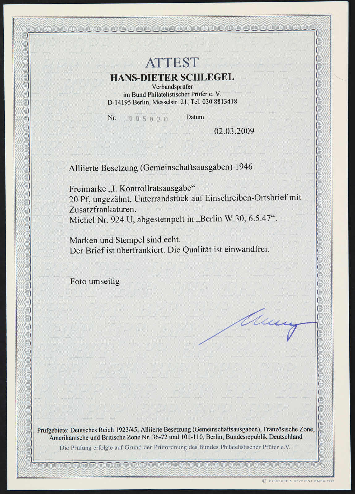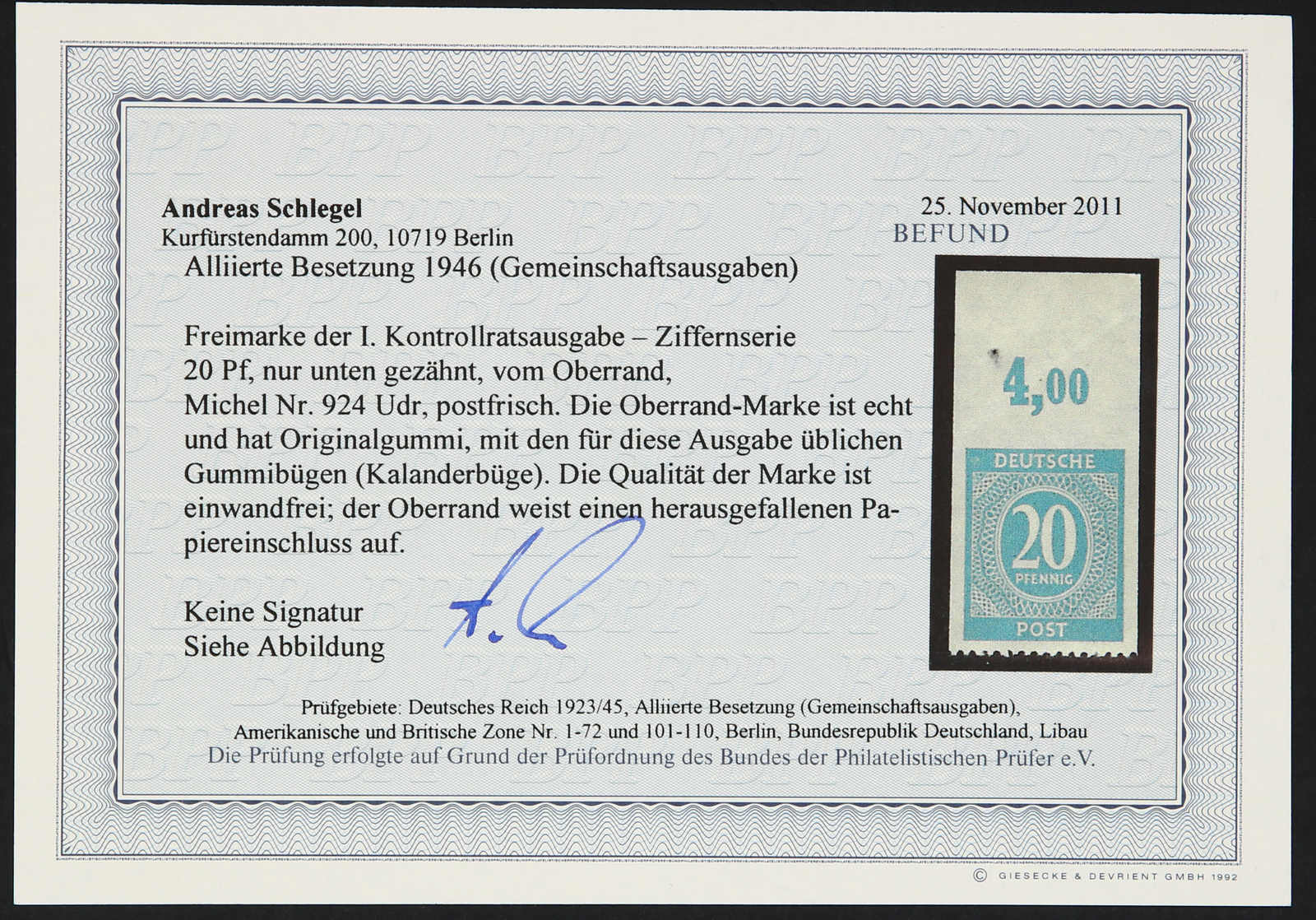 Get Market Data for [Germany (Allied Occupation Zones) Michel: 924 DZ F] Visual Pricing Guide Sample Census