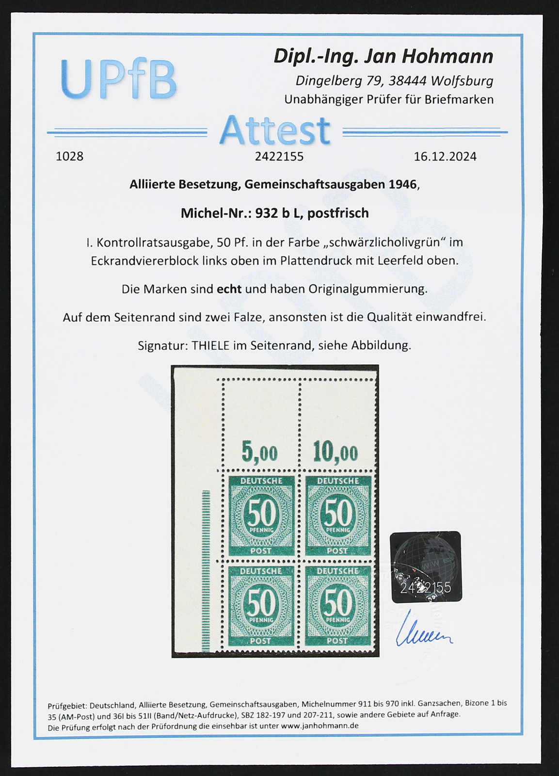 Get Market Data for [Germany (Allied Occupation Zones) Michel: 932 b Lo] Visual Pricing Guide Sample Census