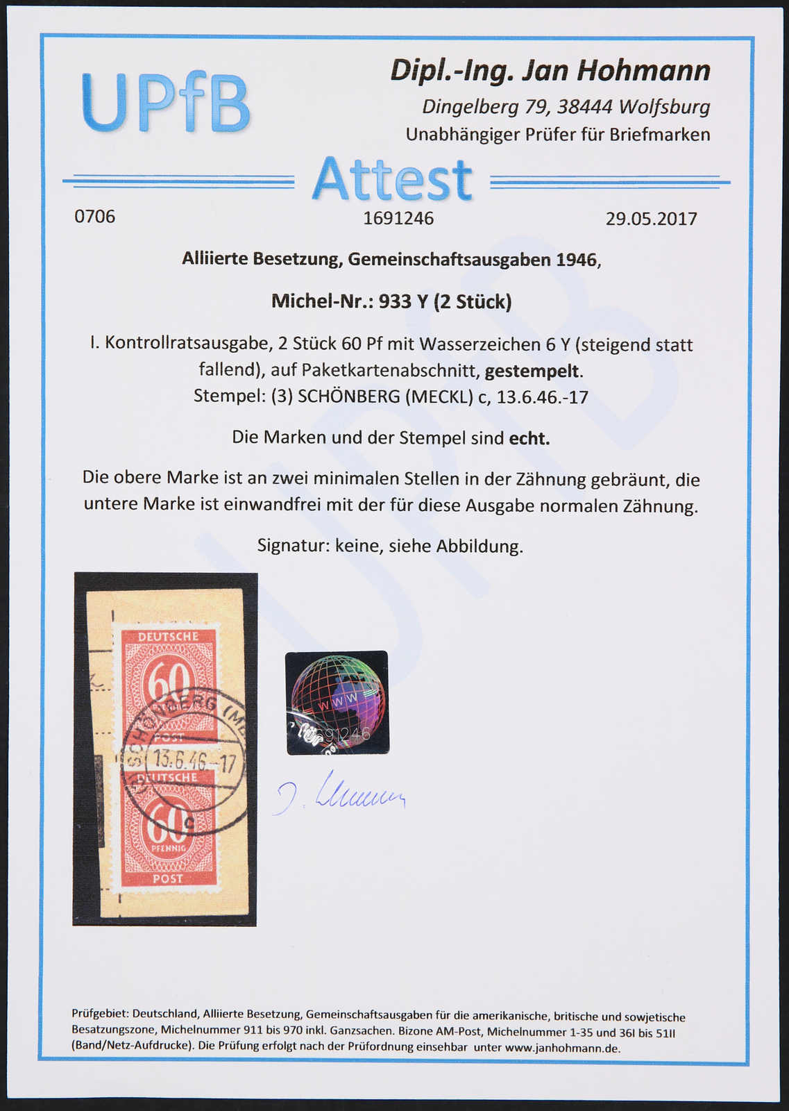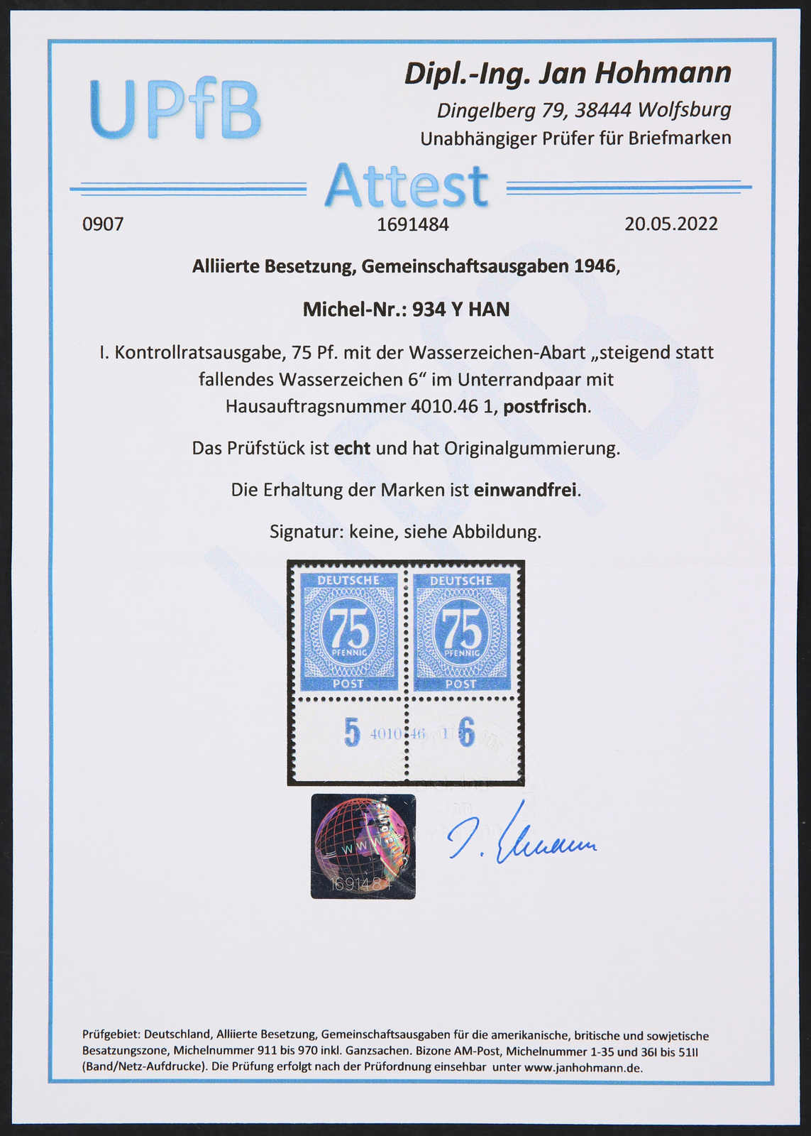 Get Market Data for [Germany (Allied Occupation Zones) Michel: 934 Lo (2)] Visual Pricing Guide Sample Census