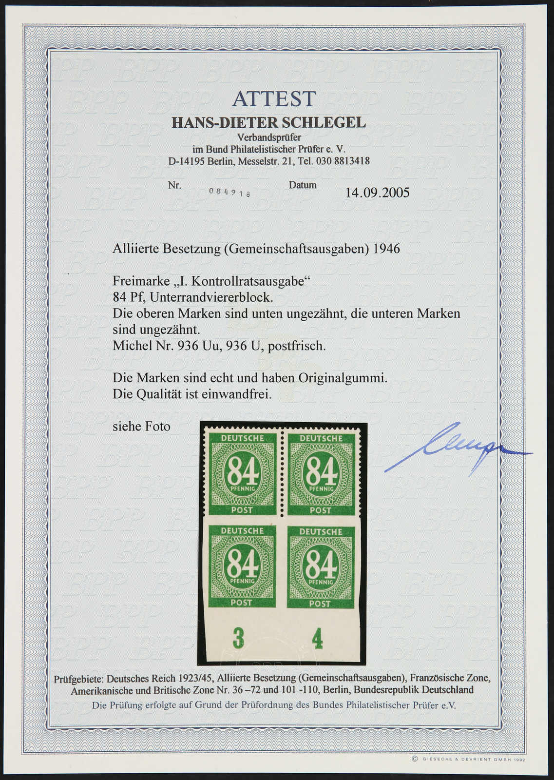 Get Market Data for [Germany (Allied Occupation Zones) Michel: 936 DZ 1] Visual Pricing Guide Sample Census