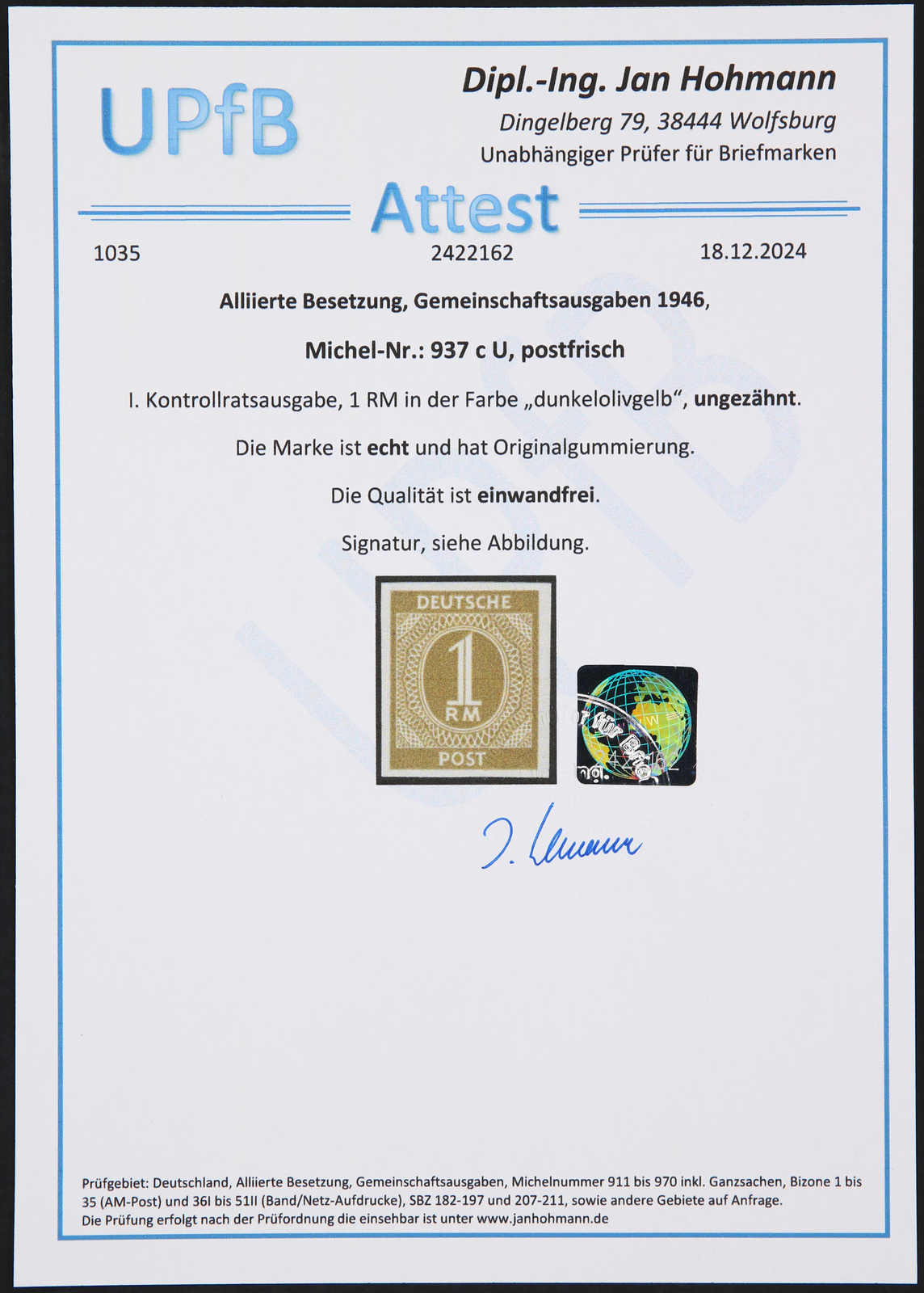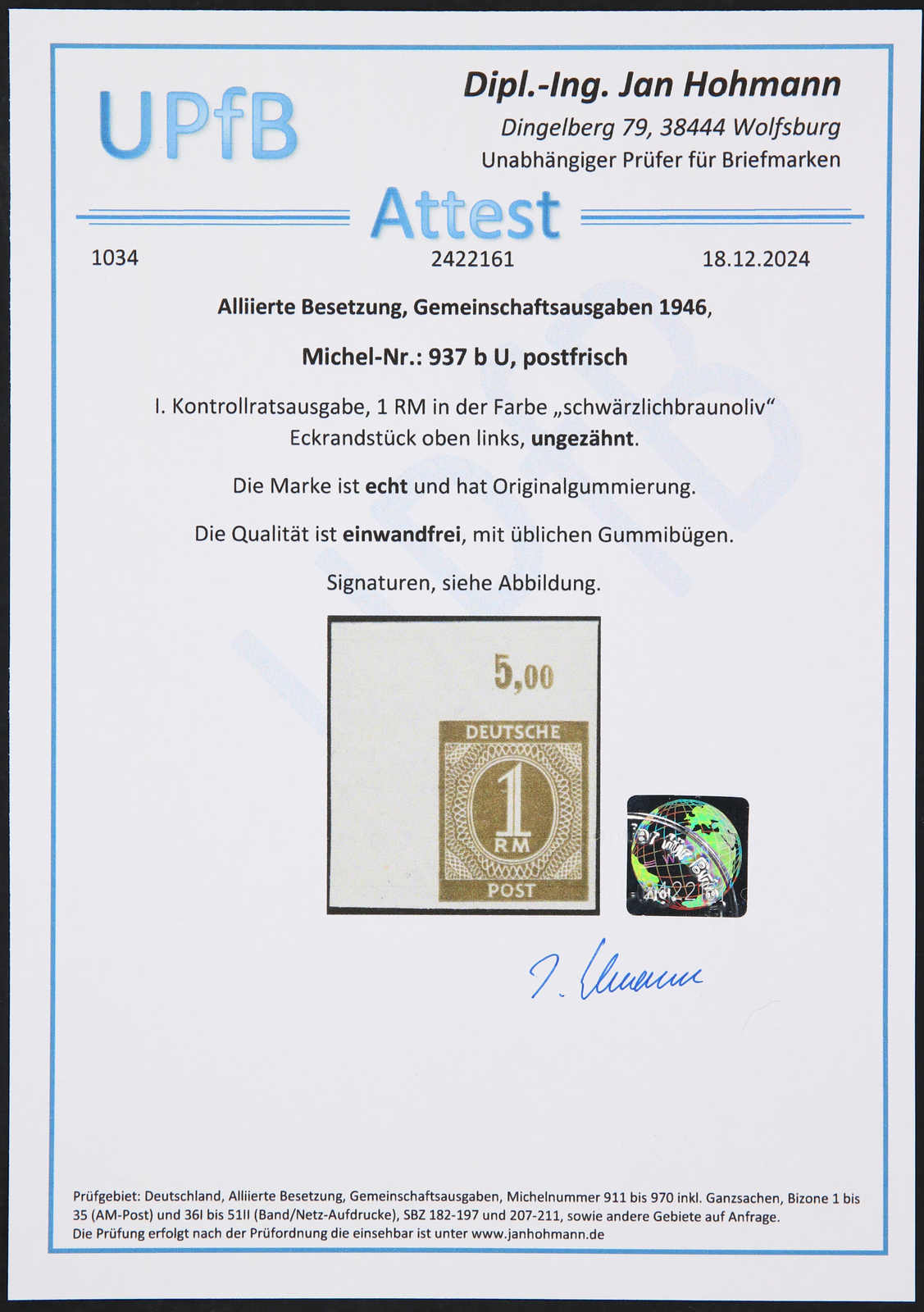 Get Market Data for [Germany (Allied Occupation Zones) Michel: 937 Uu] Visual Pricing Guide Sample Census