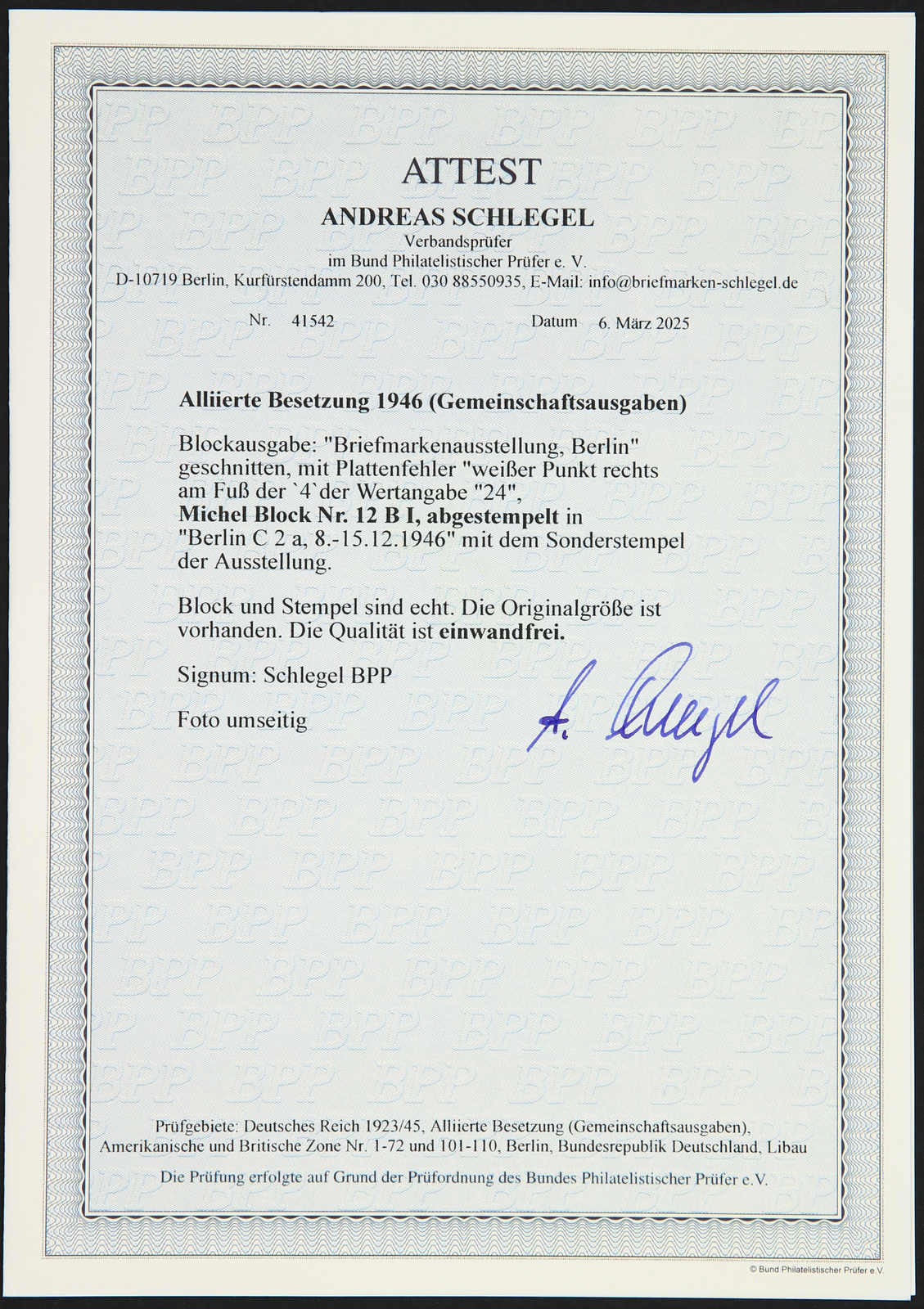 Get Market Data for [Germany (Allied Occupation Zones) Michel: Bl. 12 B I] Visual Pricing Guide Sample Census