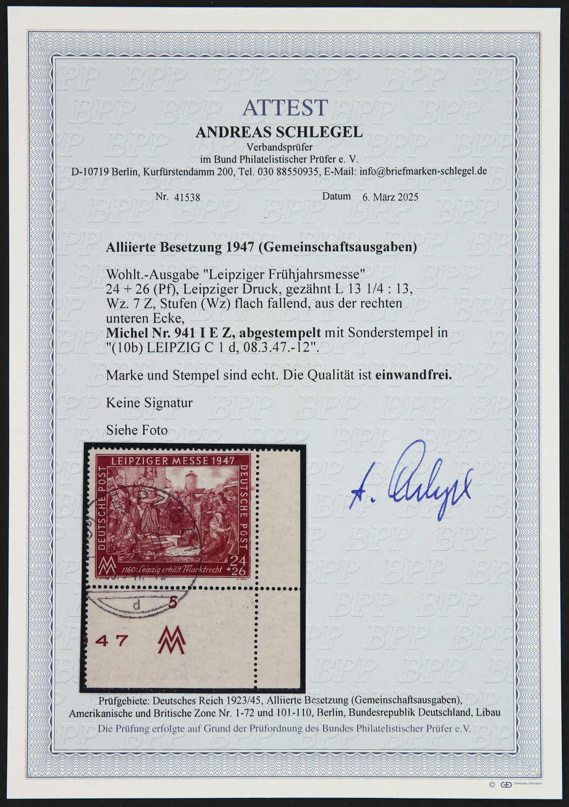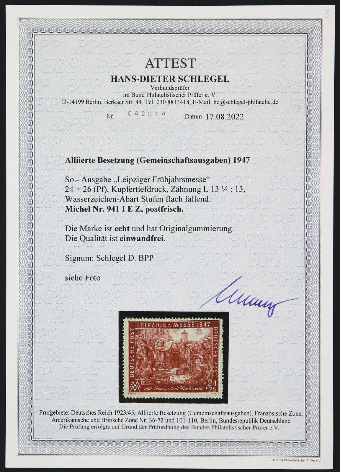 Get Market Data for [Germany (Allied Occupation Zones) Michel: 941 I E Z] Visual Pricing Guide Sample Census