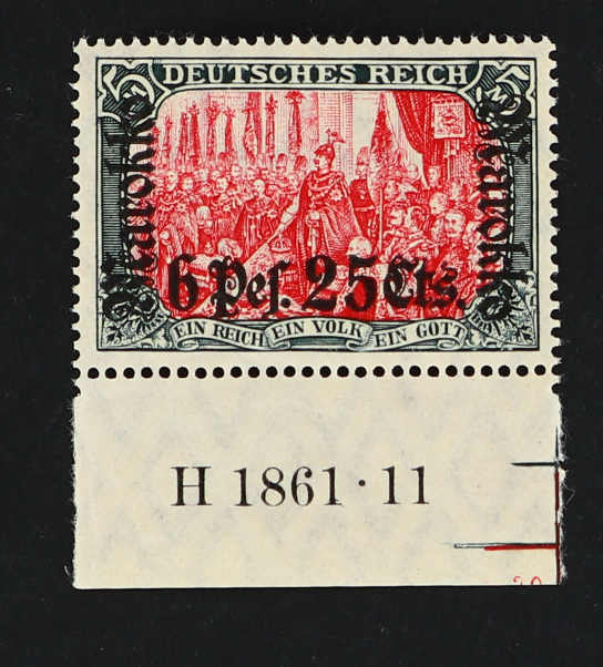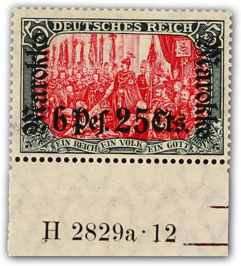 1911, 6 P. 25 C. auf 5 M. grünschwarz/dunkelkarmin, postfrischer Einzelwert vom Unterrand mit HAN H 2829a.12, farbfrisch ud gut gezähnt, einwandfrei (ME 500,-) (Image)