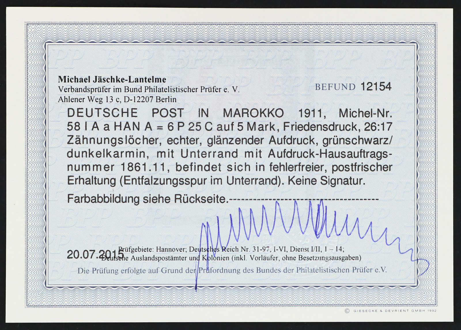 farbfrisch und einwandfrei, Fotoattest Jäschke-Lantelme BPP (ME 550,-) (Image) (imagea)