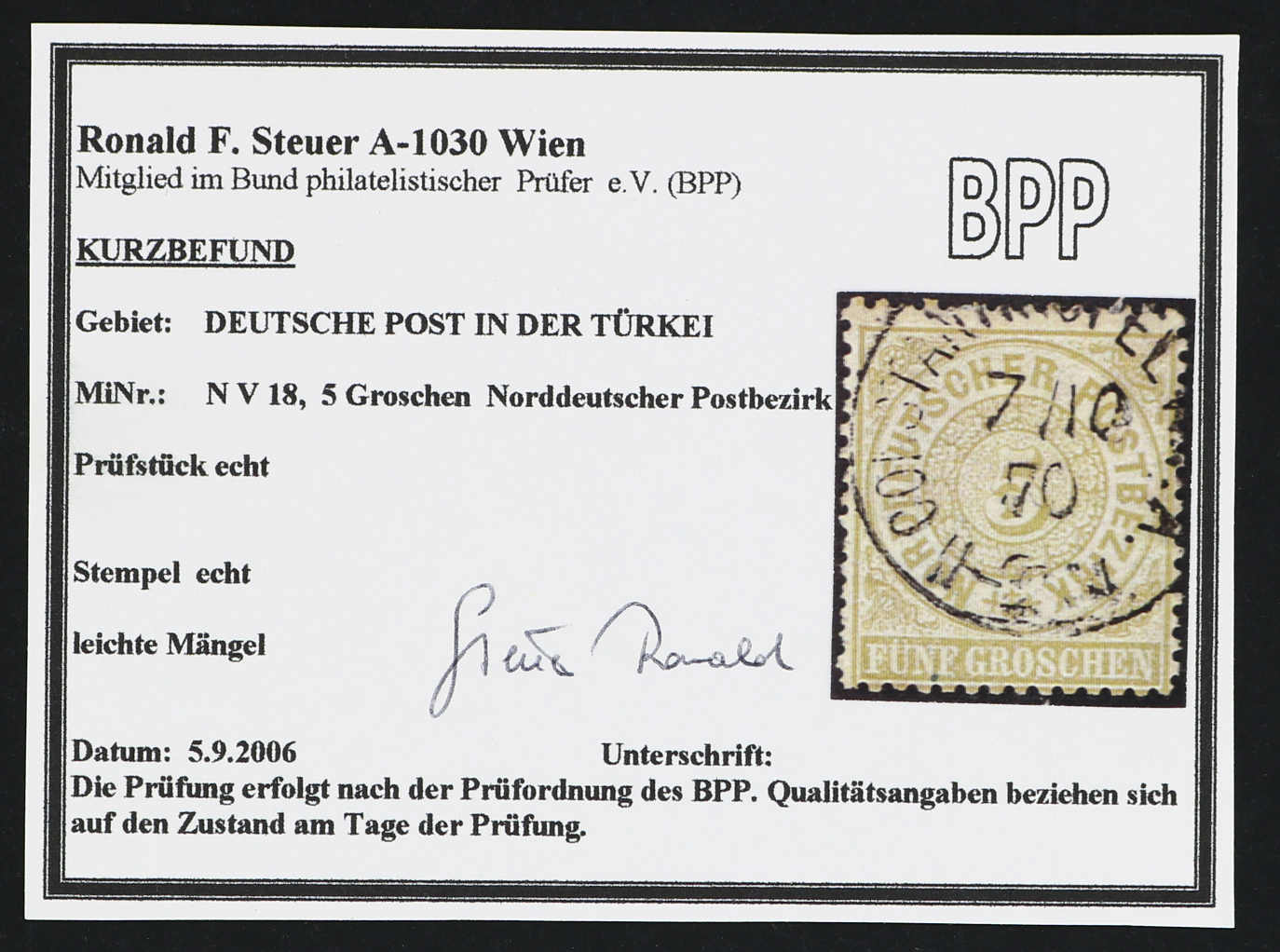 1870, 5 Gr. olivbraun, gestempelt "CONSTAN(TINO)EL(N.P.)A. 7/10 70", leichte Einschränkungen, Kurzbefund Steuer BPP (ME 800,-) (Image) (imagea)