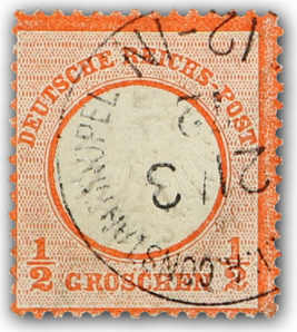 1872, ½ Gr. kl. Brustschild lebhaftrötlichorange, entwertet mit Teilabschlag "(KAISERL.DEUTSCH.) P.A. CONSTANTINOPEL 21.3.72", farbfrisch und gut gezähnt, sign. Dr. Steuer BPP, einwandfrei (ME 450,-) (Image)