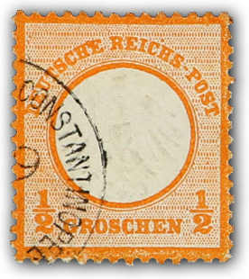 1872, ½ Gr. kl. Brustschild lebhaftgelboprange, entwertet mit Teilabschlag "(KAISERL.DEUTSCH. P.A.)CONSTANTINOPEL ...9...", farbfrisch und gut gezähnt, etwas höher sign. Bothe BPP und Pfenninger BPP (ME 700,-) (Image)