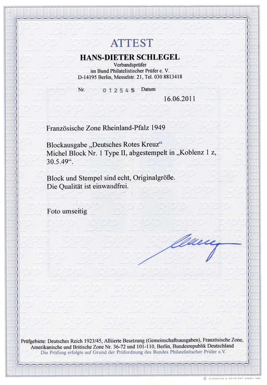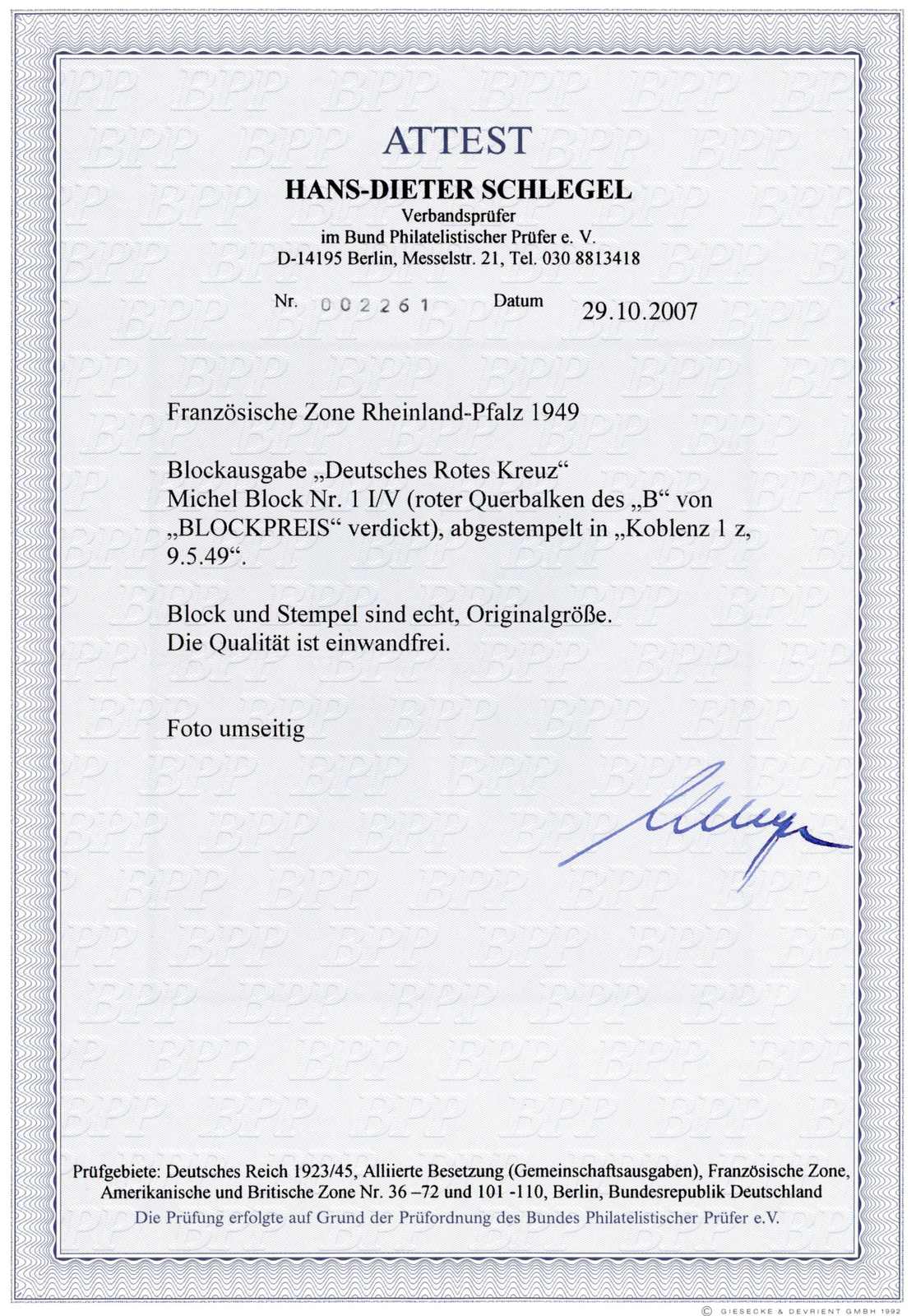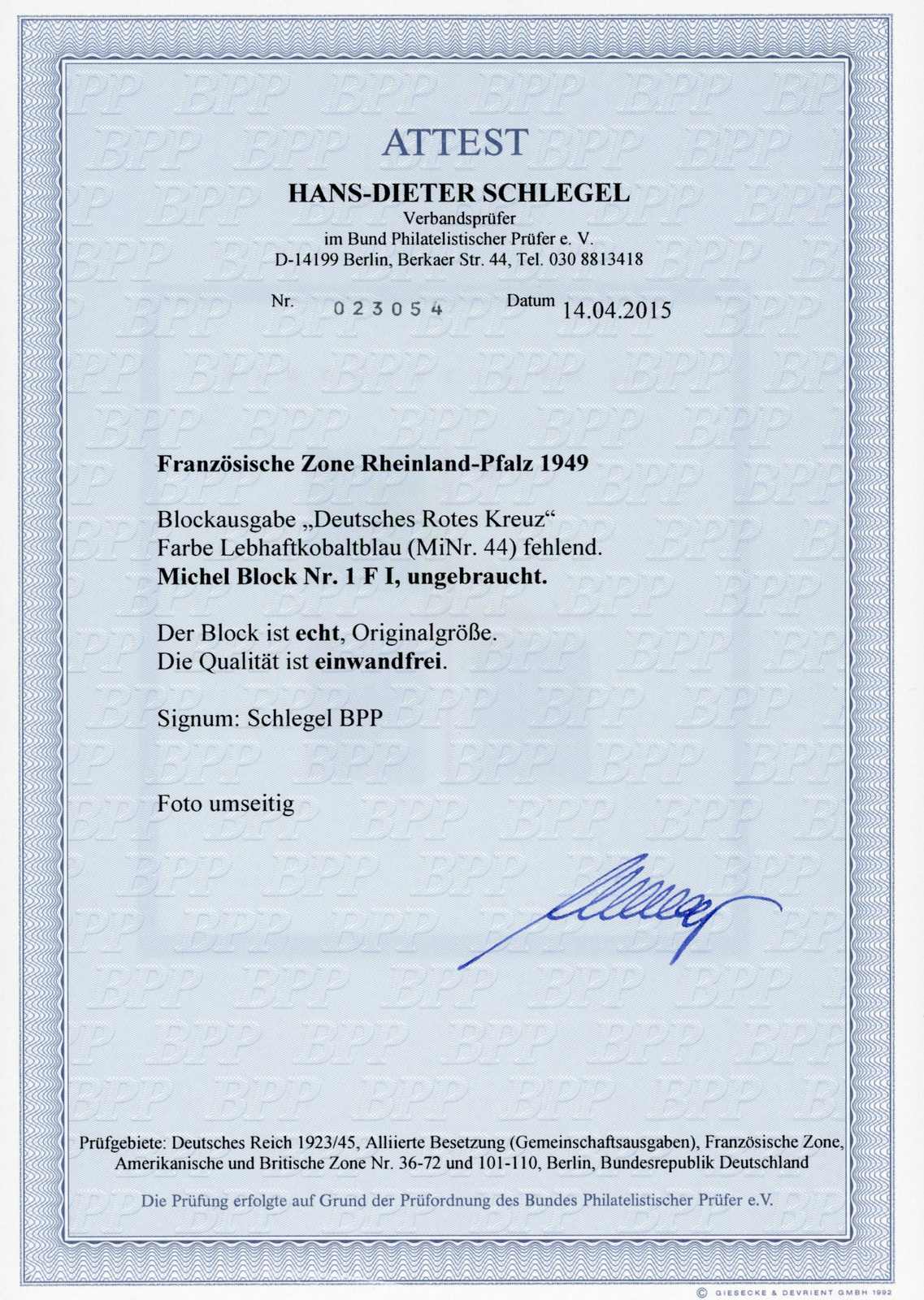 Get Market Data for [Germany Michel: Bl. 1 F I] Visual Pricing Guide Sample Census