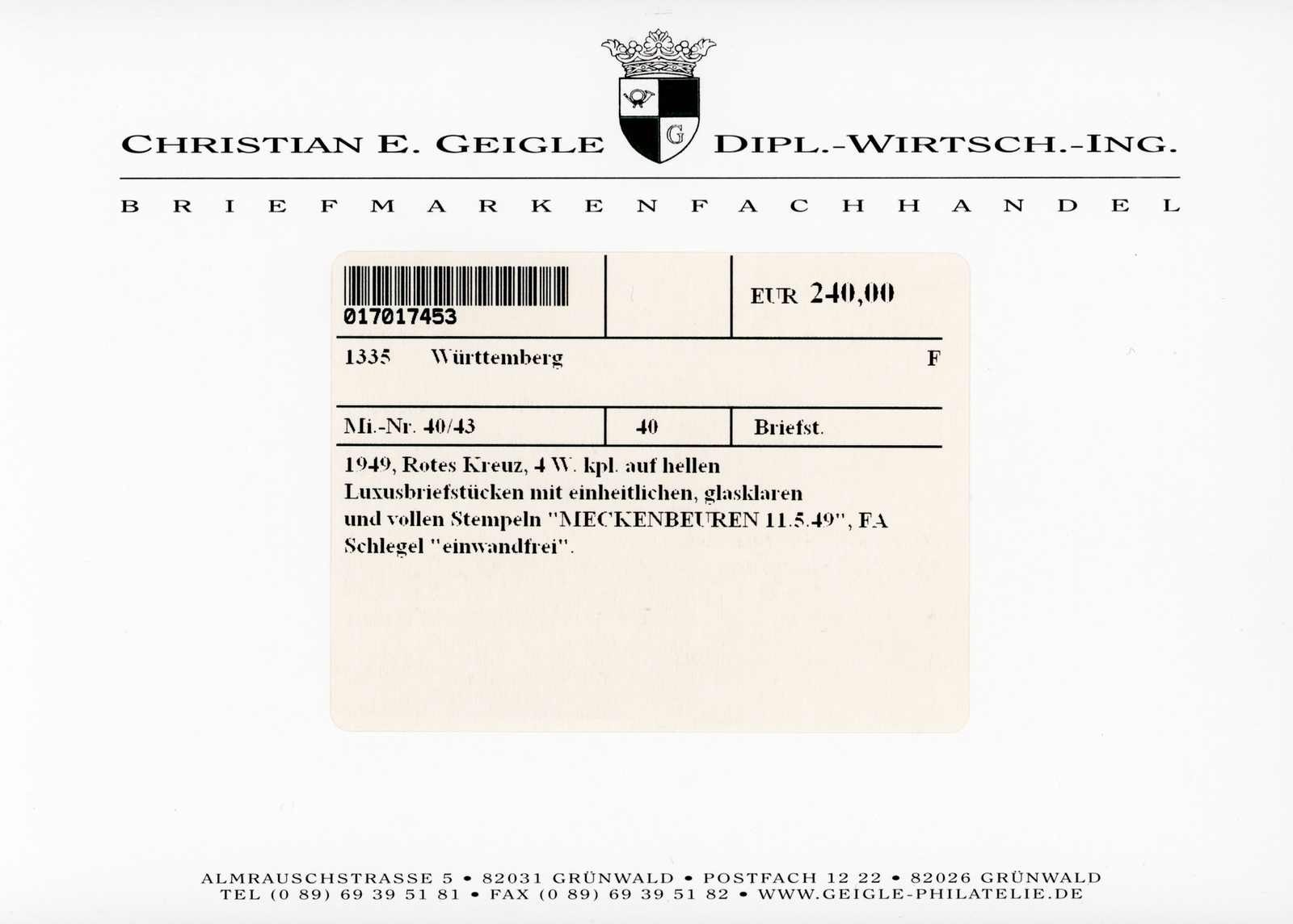 Get Market Data for [Germany Michel: 40-43 A] Visual Pricing Guide Sample Census