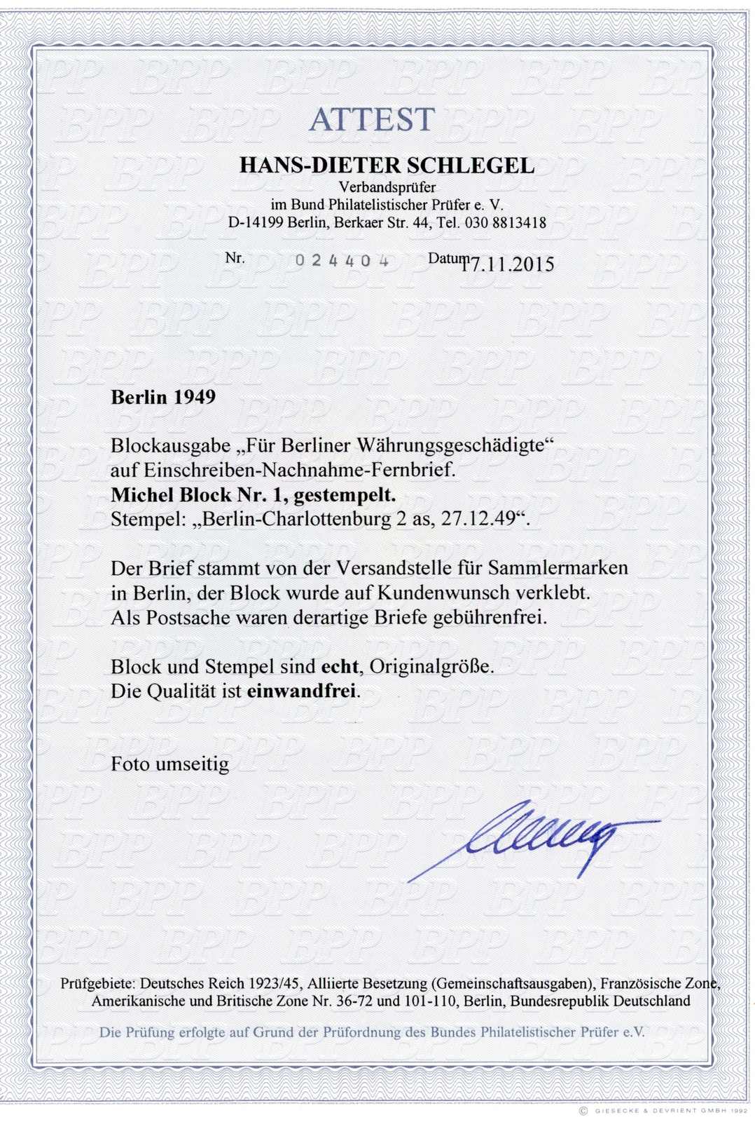 Get Market Data for [Germany Michel: Bl. 1 FDC] Visual Pricing Guide Sample Census