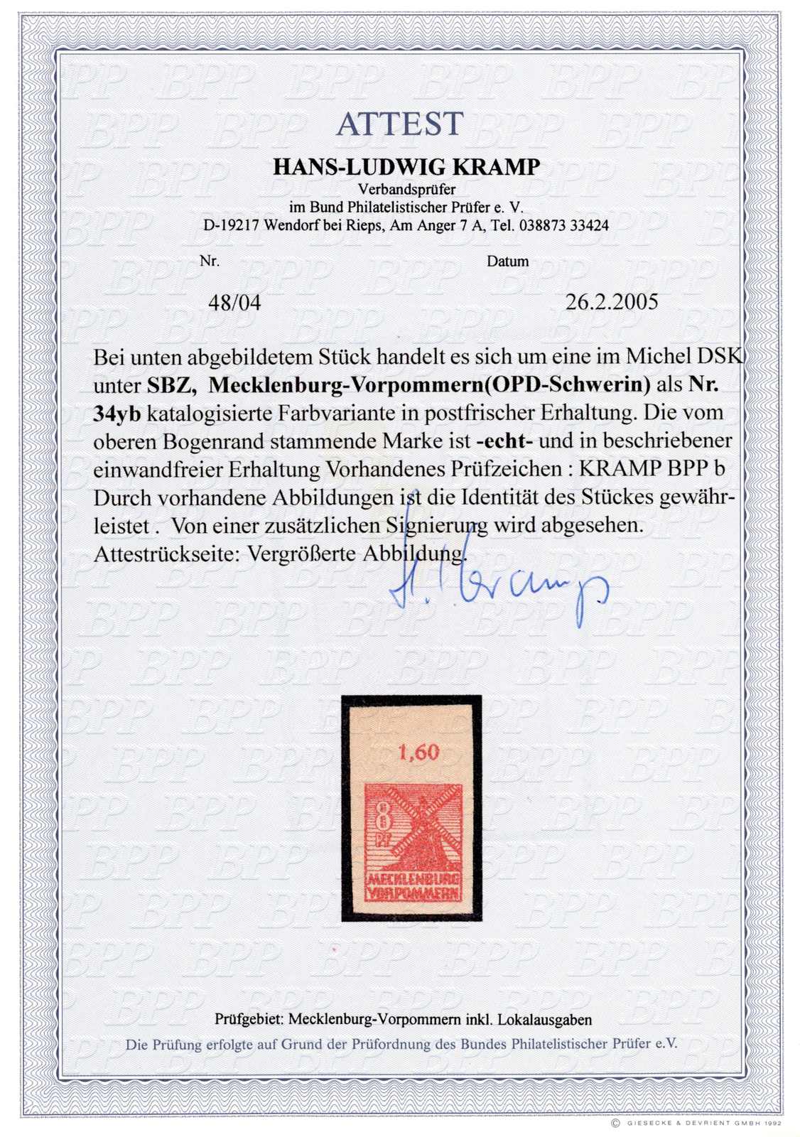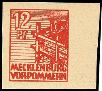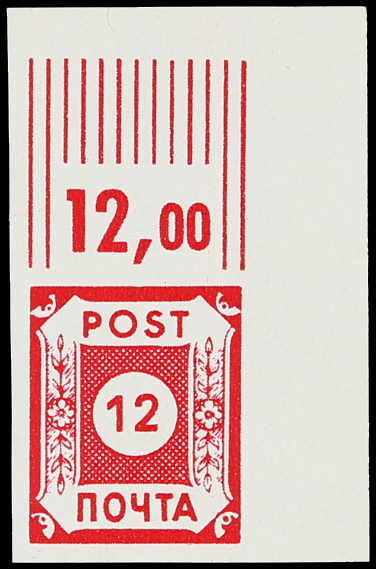 1945, 12 Pfg. Potschta rot, Ölfarbe, postfrisches Exemplar aus der oberen rechten Bogenecke, ungefaltet und unsigniert in einwandfreier Qualität, Fotoattest Ströh BPP (Image) (imagea)