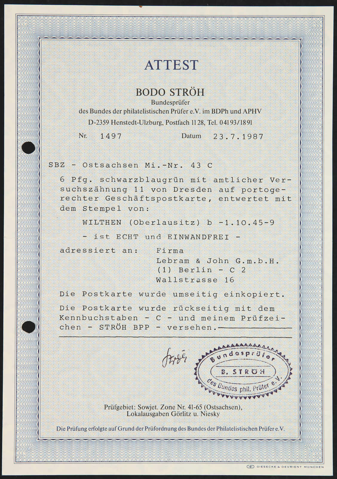 Get Market Data for [Germany (Soviet Occupation Zone) Michel: 43 C] Visual Pricing Guide Sample Census