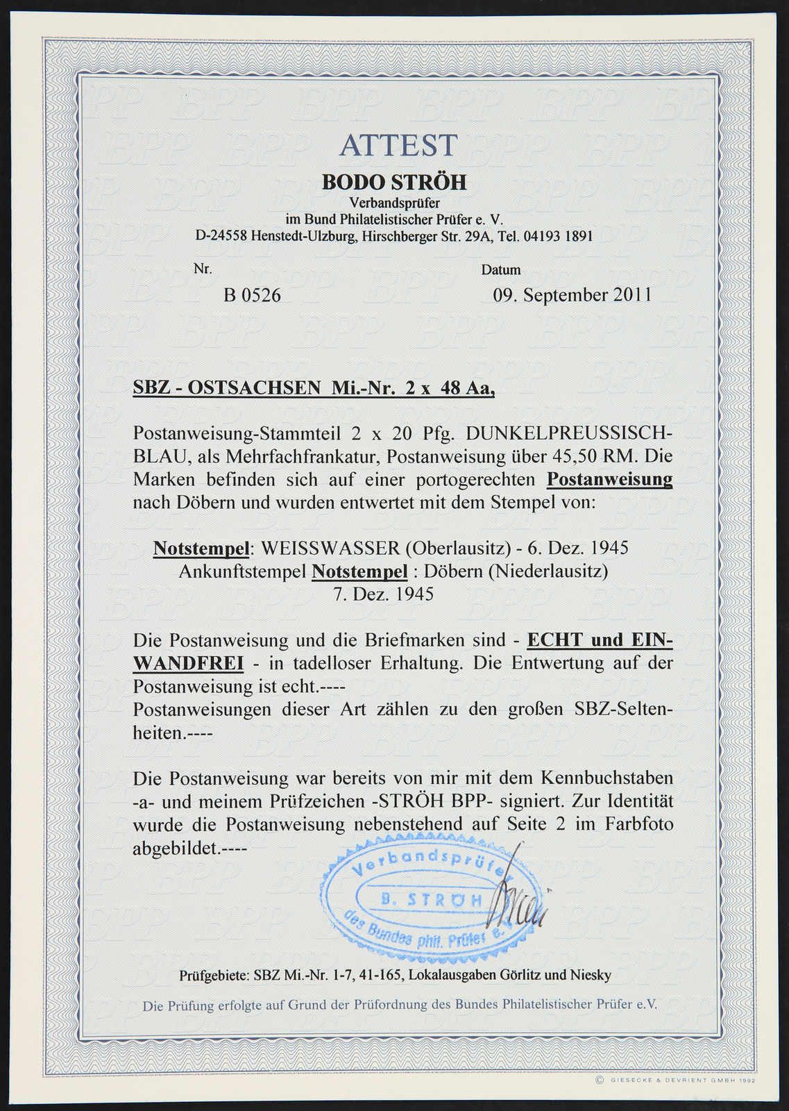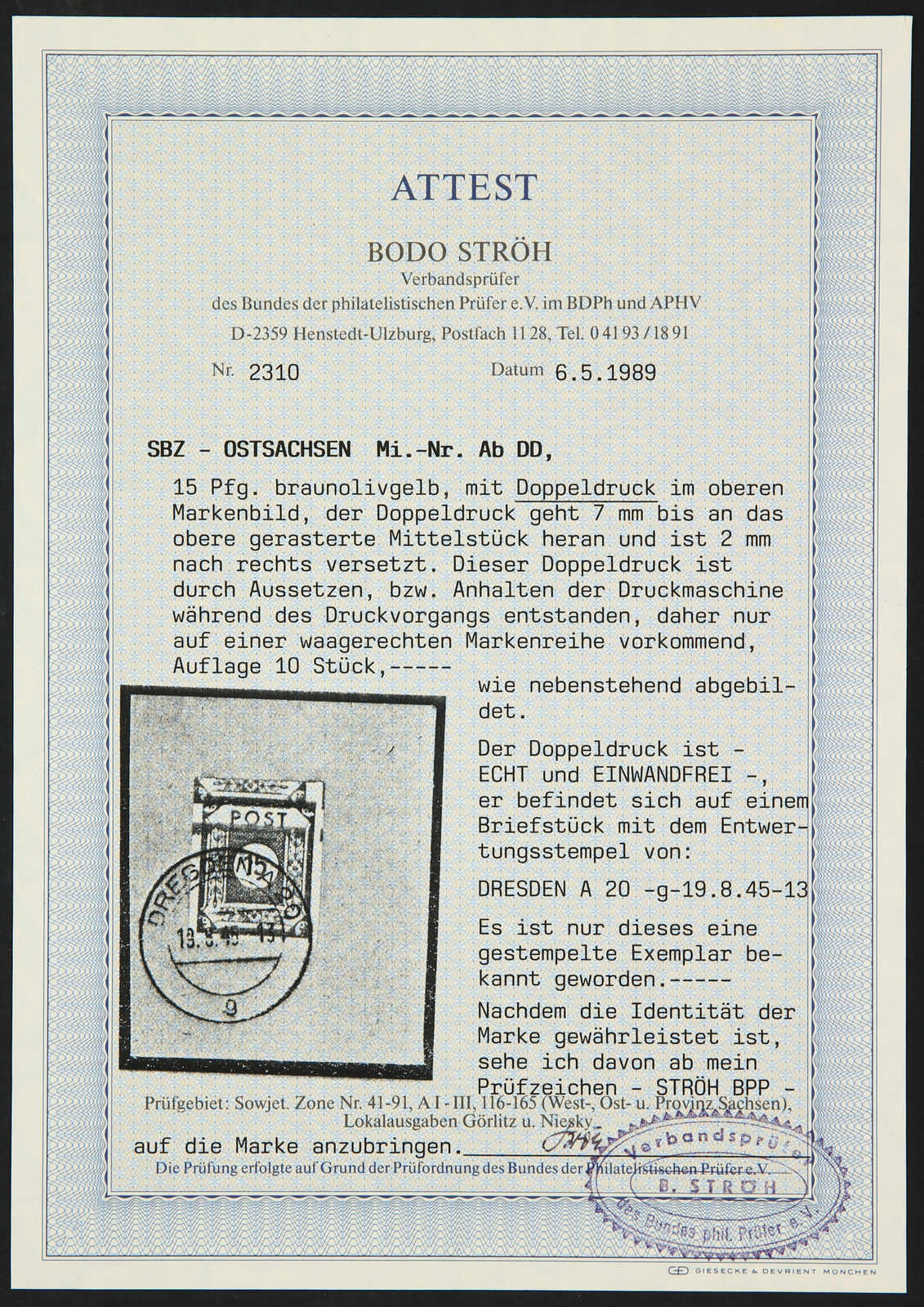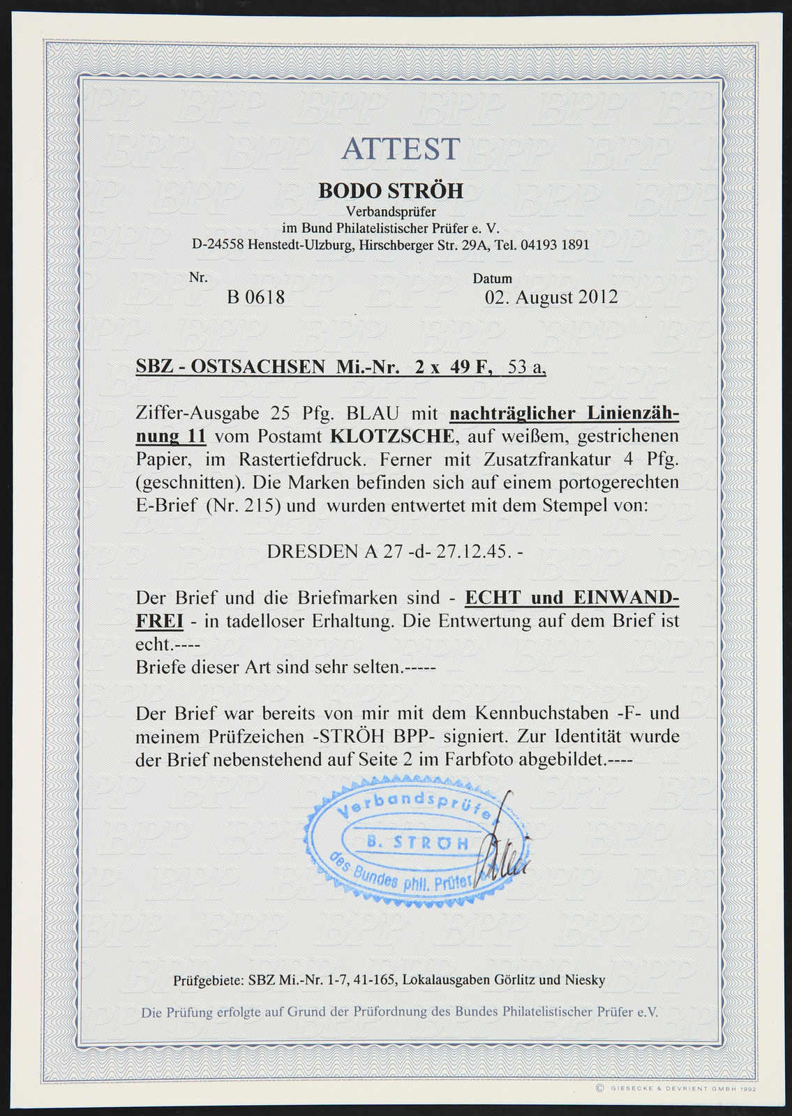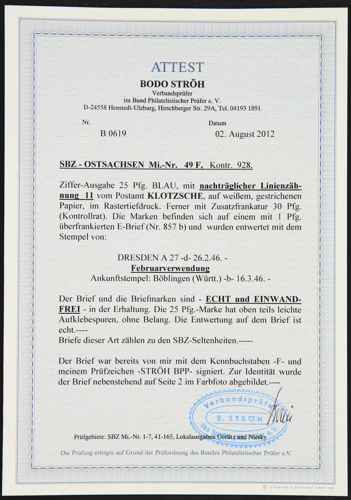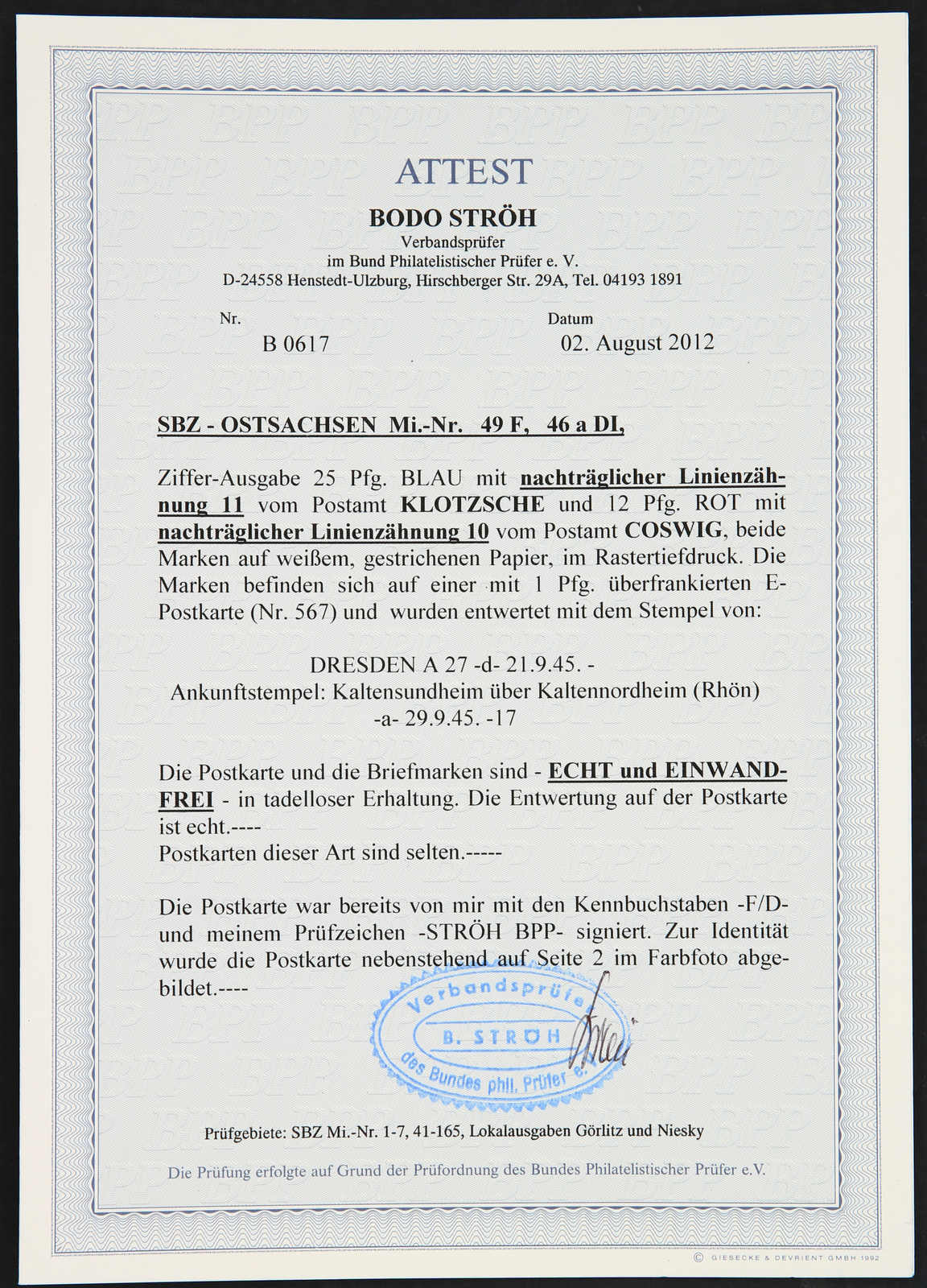 Get Market Data for [Germany (Soviet Occupation Zone) Michel: 49 F, 46 DI a] Visual Pricing Guide Sample Census