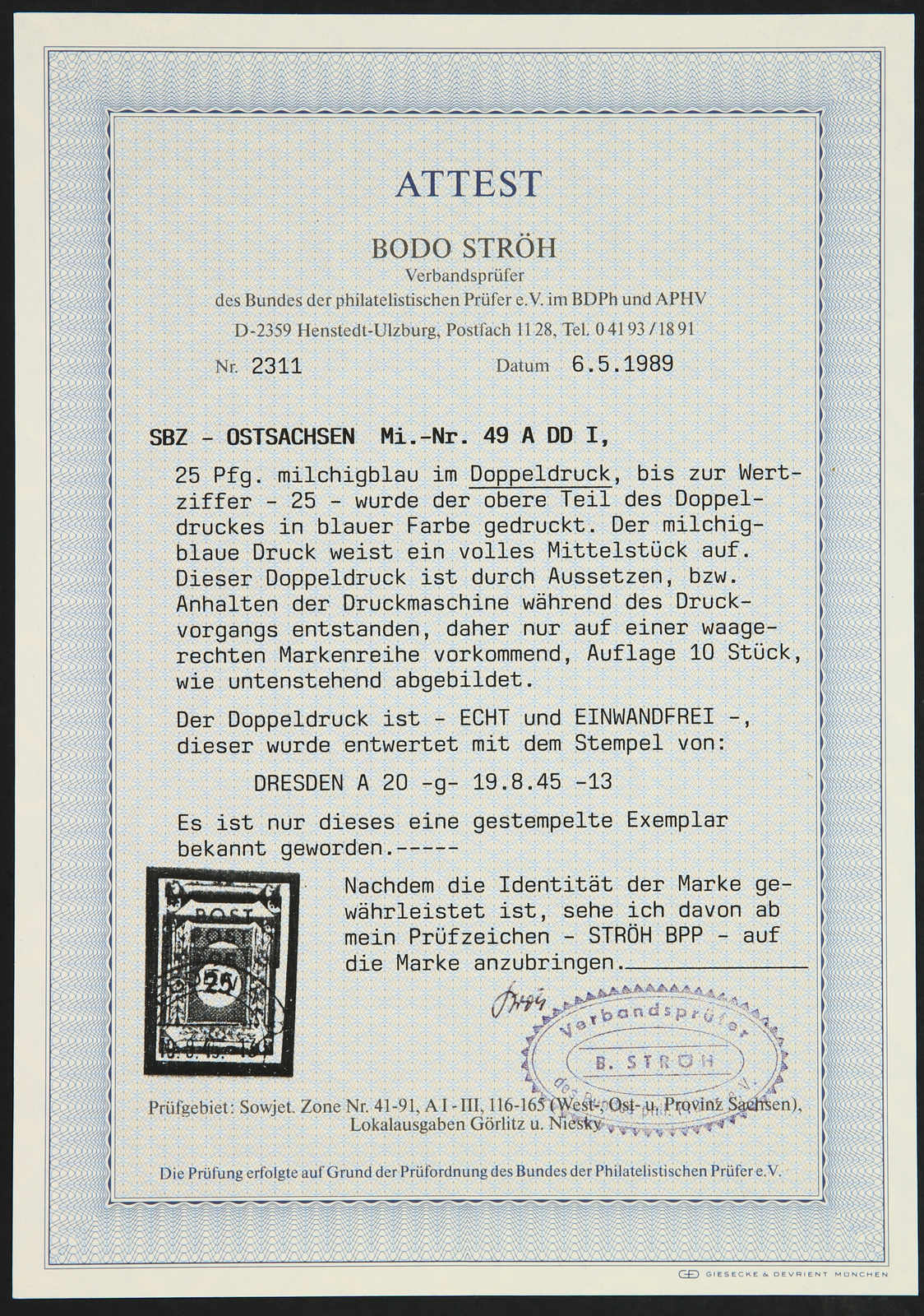 Get Market Data for [Germany (Soviet Occupation Zone) Michel: 49 A DDI] Visual Pricing Guide Sample Census