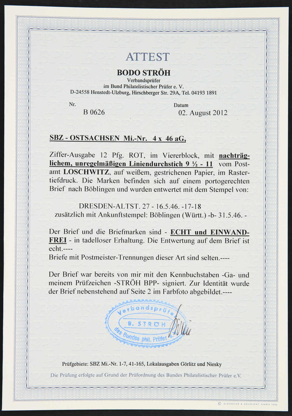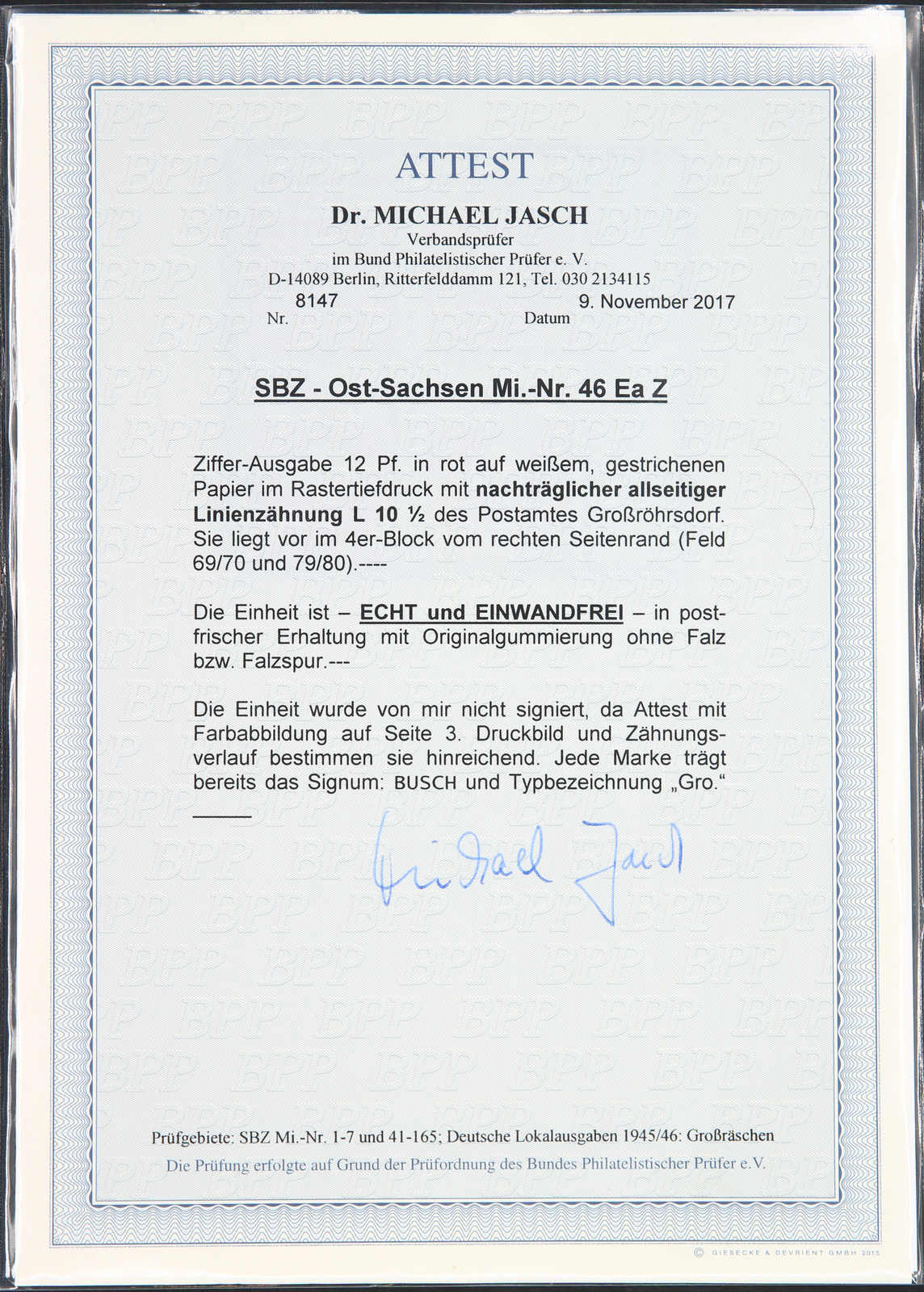 Get Market Data for [Germany (Soviet Occupation Zone) Michel: 46 E Z (4)] Visual Pricing Guide Sample Census