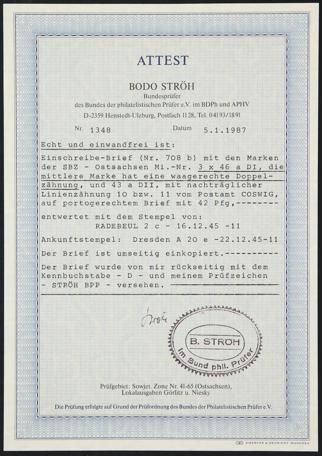 Get Market Data for [Germany (Soviet Occupation Zone) Michel: 46 DI a (3), 43 D] Visual Pricing Guide Sample Census