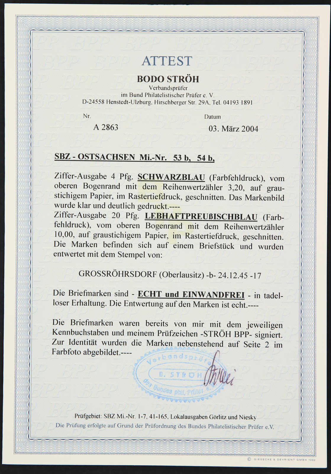 Get Market Data for [Germany (Soviet Occupation Zone) Michel: 53b, 54b] Visual Pricing Guide Sample Census
