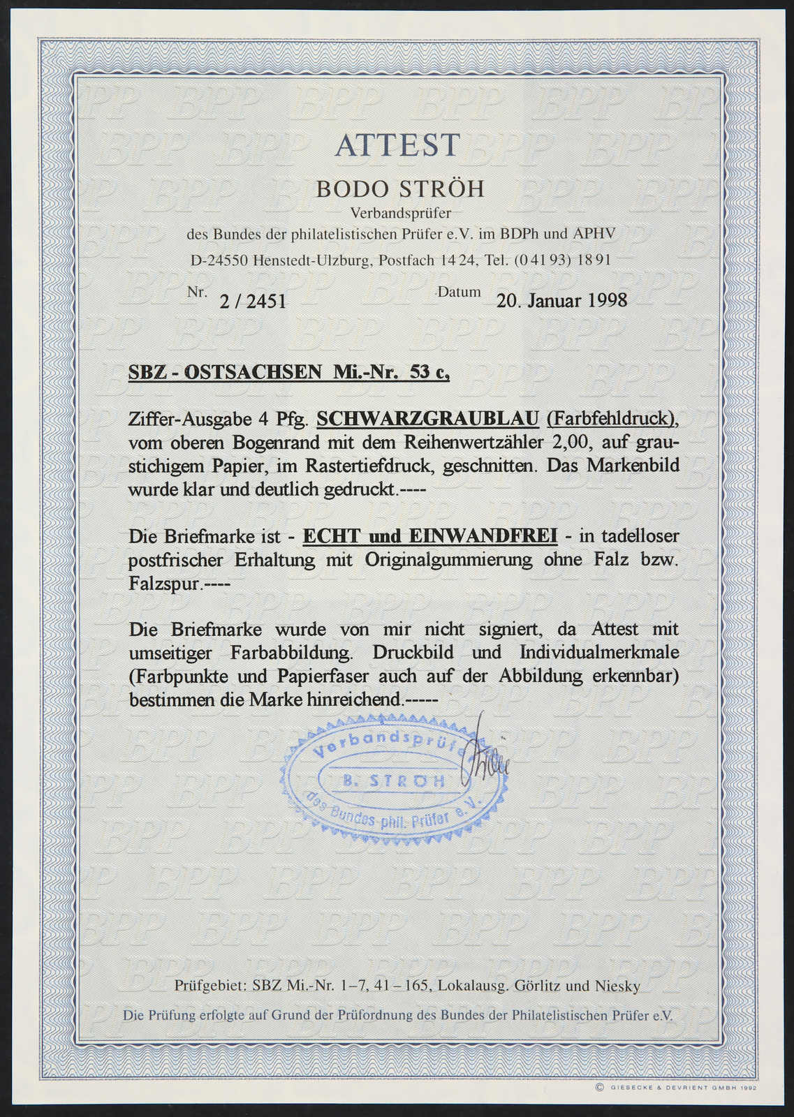 Get Market Data for [Germany (Soviet Occupation Zone) Michel: 53 c] Visual Pricing Guide Sample Census