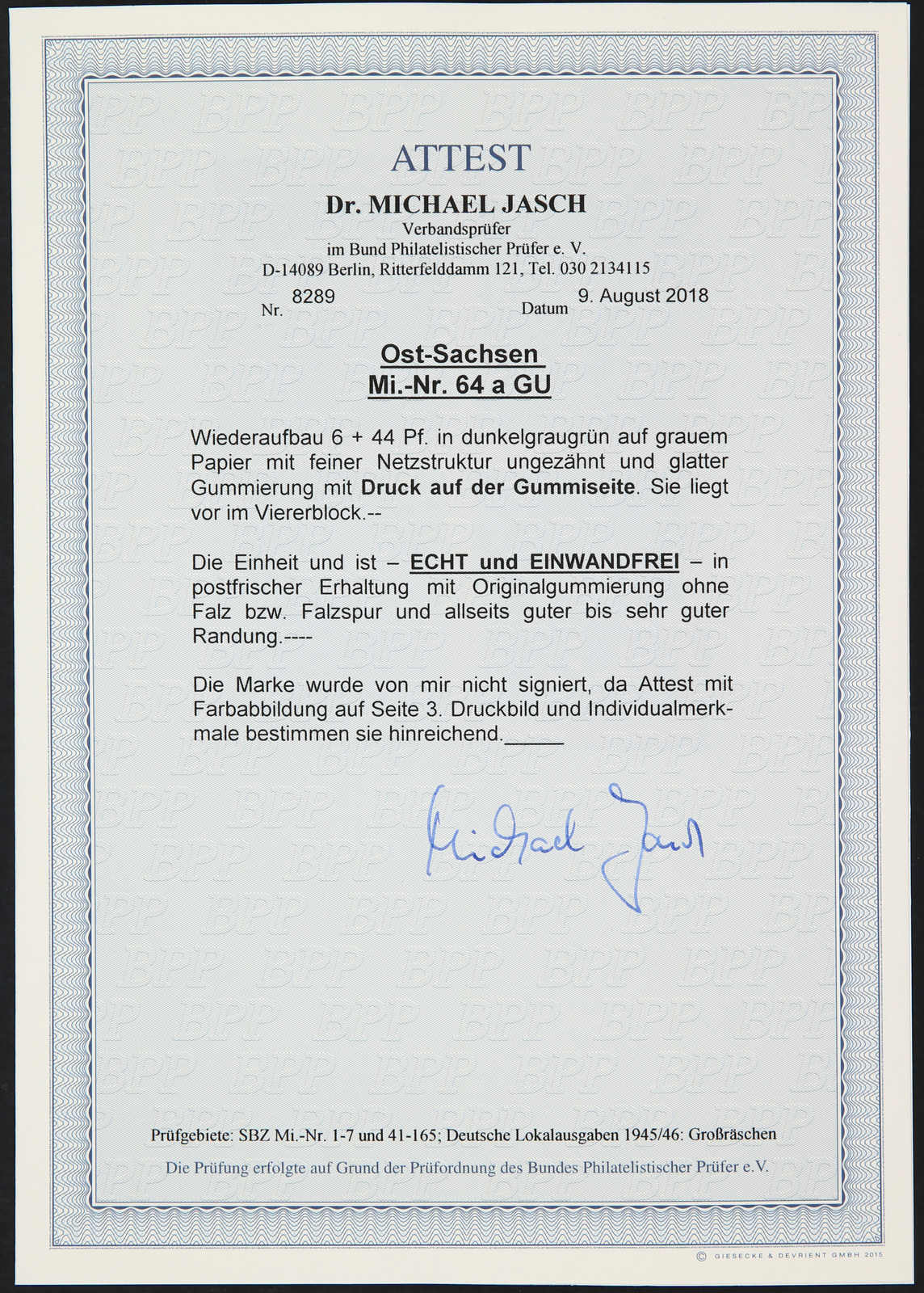 Get Market Data for [Germany (Soviet Occupation Zone) Michel: 64 a G U (4)] Visual Pricing Guide Sample Census