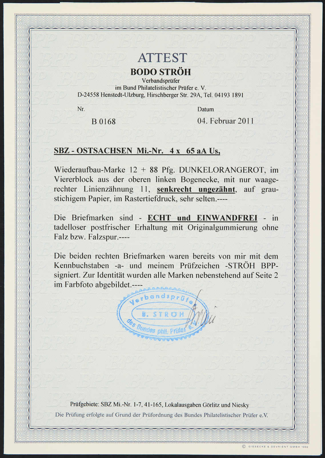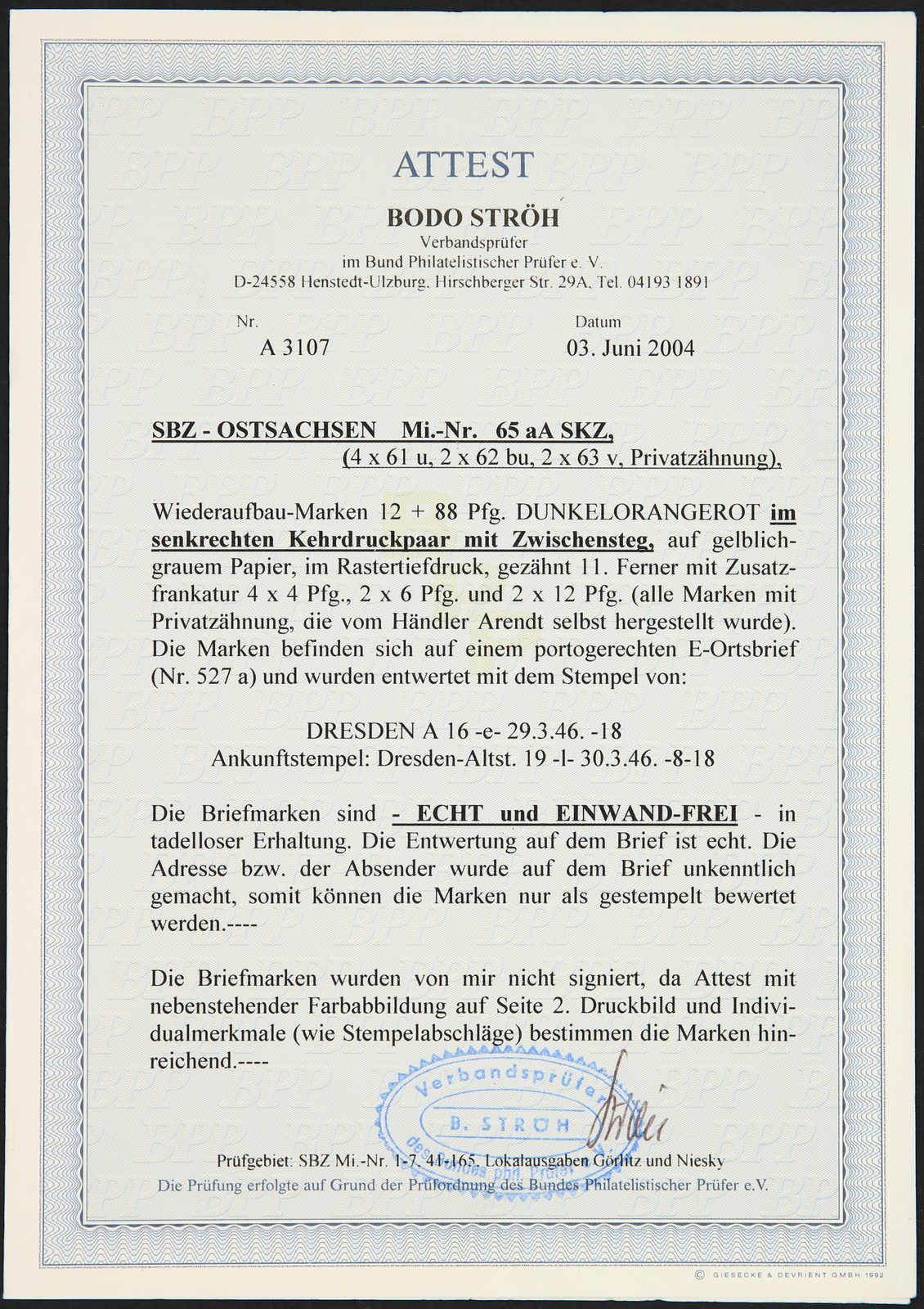 Get Market Data for [Germany (Soviet Occupation Zone) Michel: 65 a A SKZ u.a.] Visual Pricing Guide Sample Census