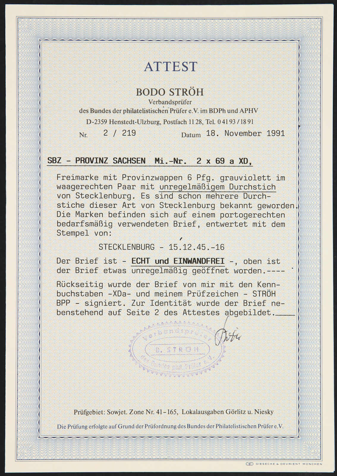 Get Market Data for [Germany (Soviet Occupation Zone) Michel: 69 AX c (2)] Visual Pricing Guide Sample Census