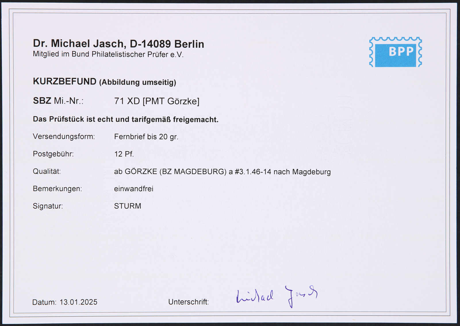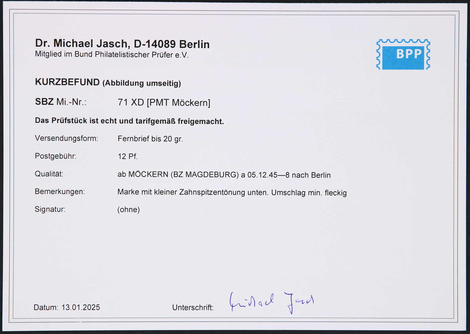 Get Market Data for [Germany (Soviet Occupation Zone) Michel: 71 X D] Visual Pricing Guide Sample Census