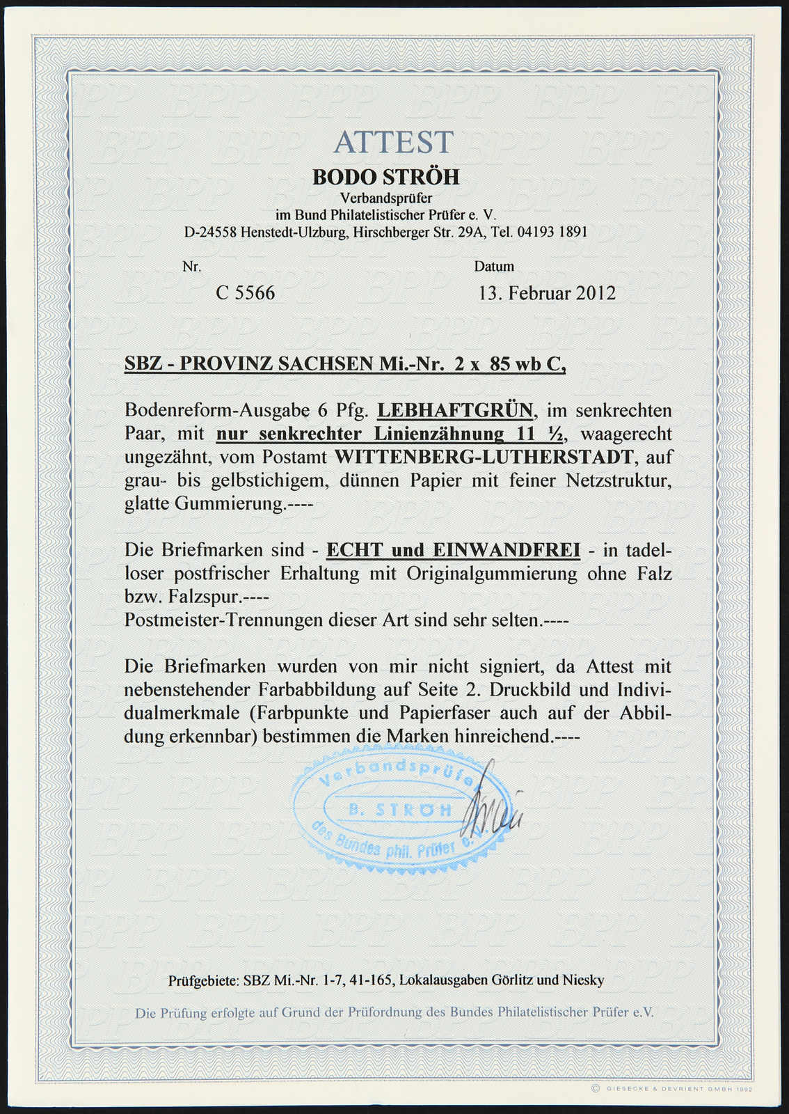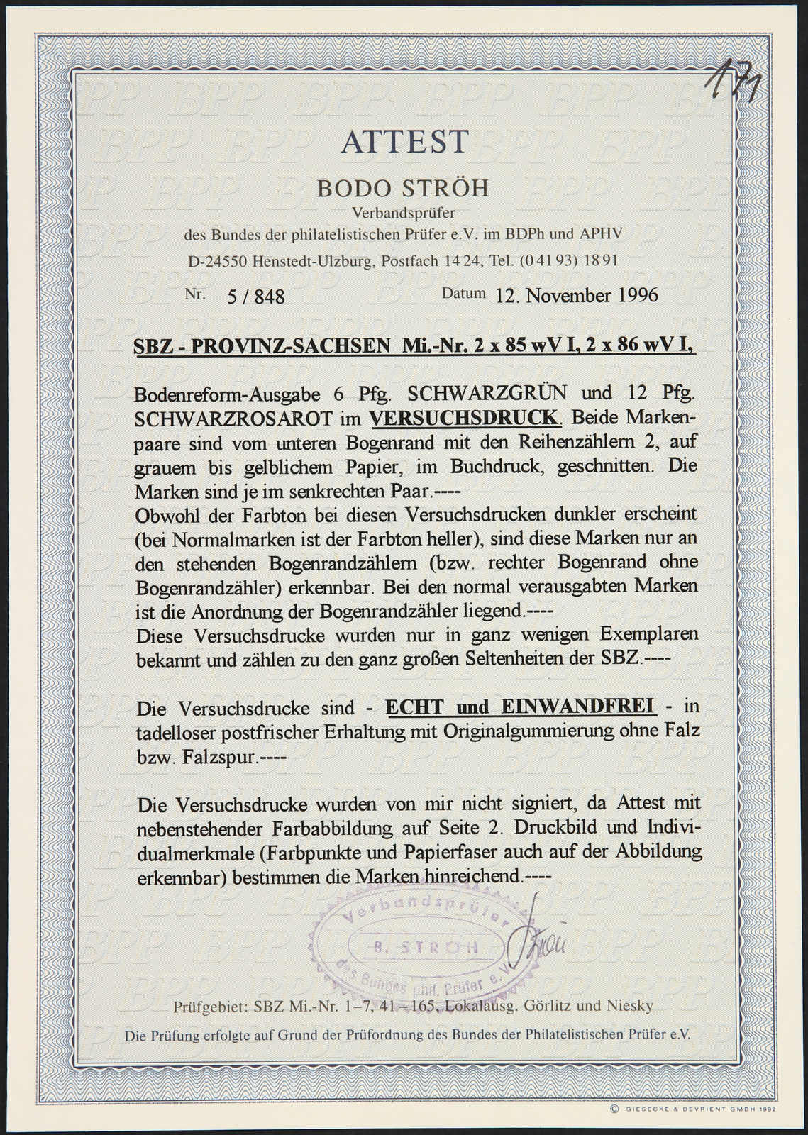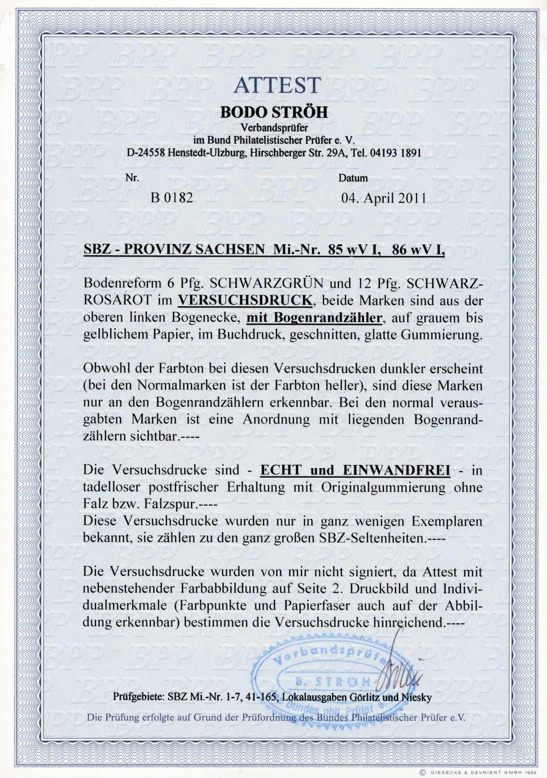 Get Market Data for [Germany (Soviet Occupation Zone) Michel: 85-86 w V I] Visual Pricing Guide Sample Census