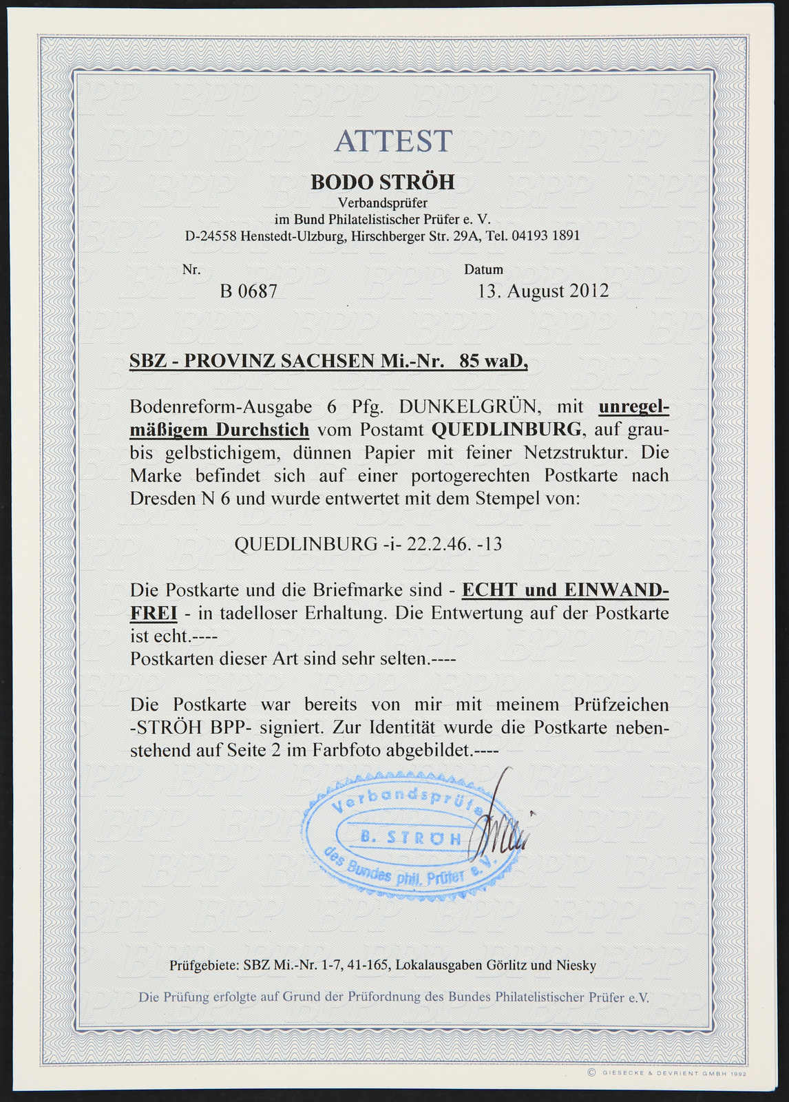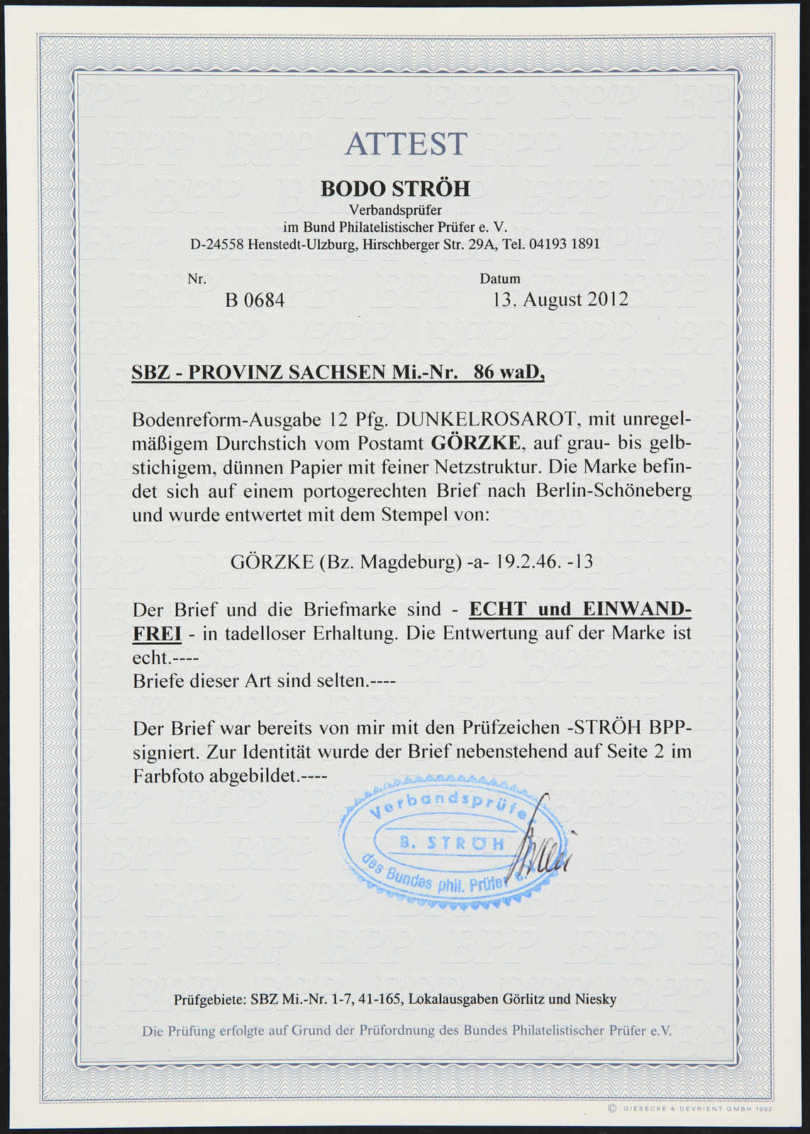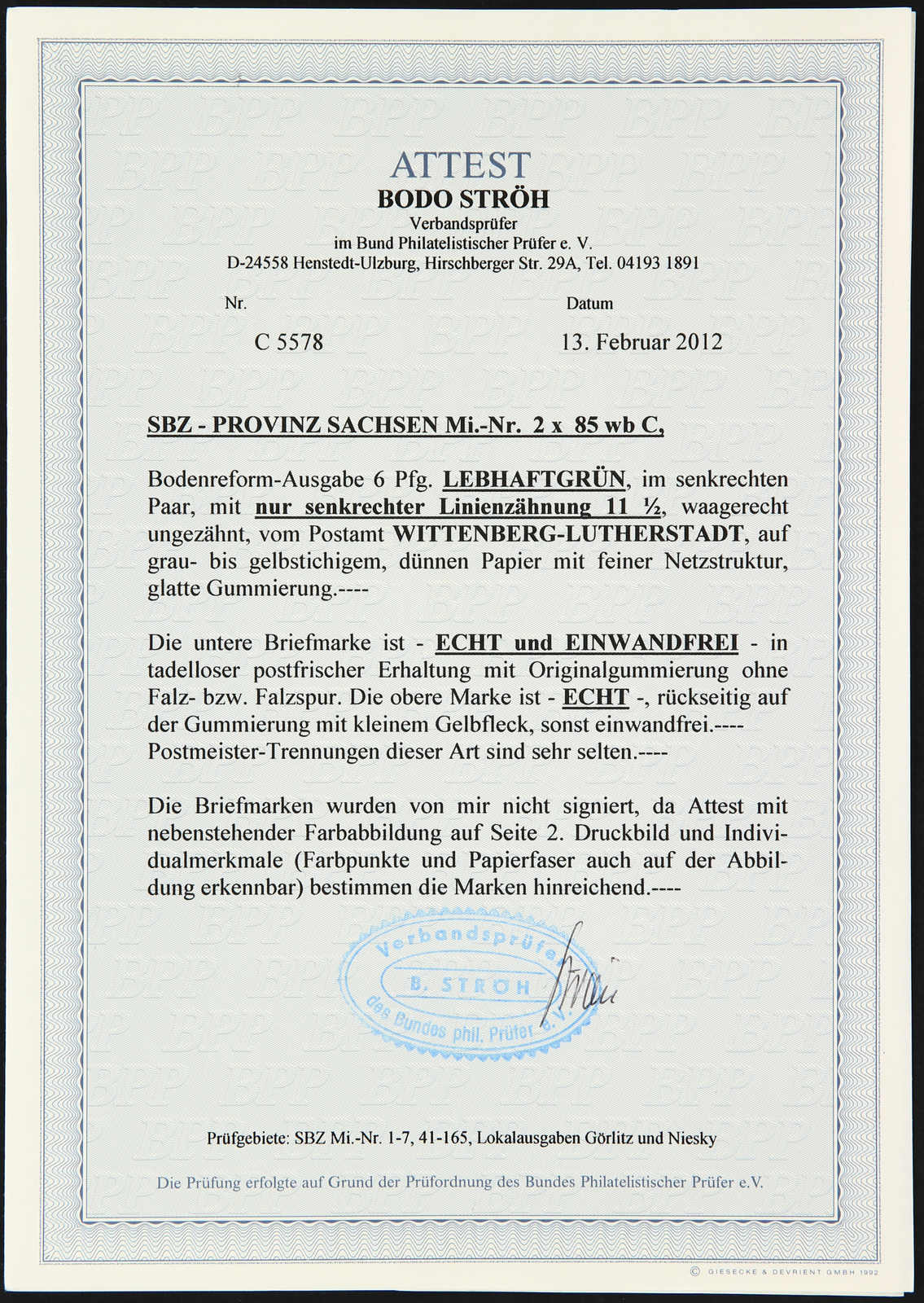 Get Market Data for [Germany (Soviet Occupation Zone) Michel: 85-86 w V I] Visual Pricing Guide Sample Census
