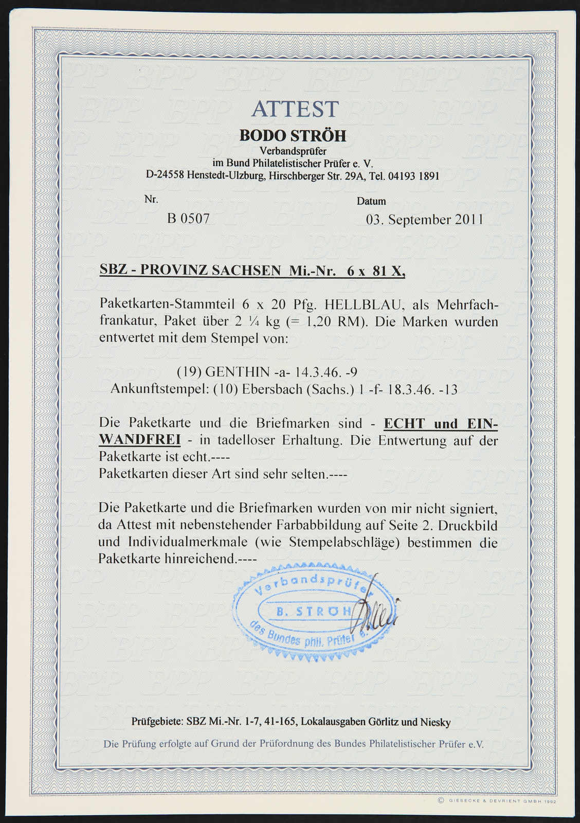 Get Market Data for [Germany (Soviet Occupation Zone) Michel: 81 X (6)] Visual Pricing Guide Sample Census