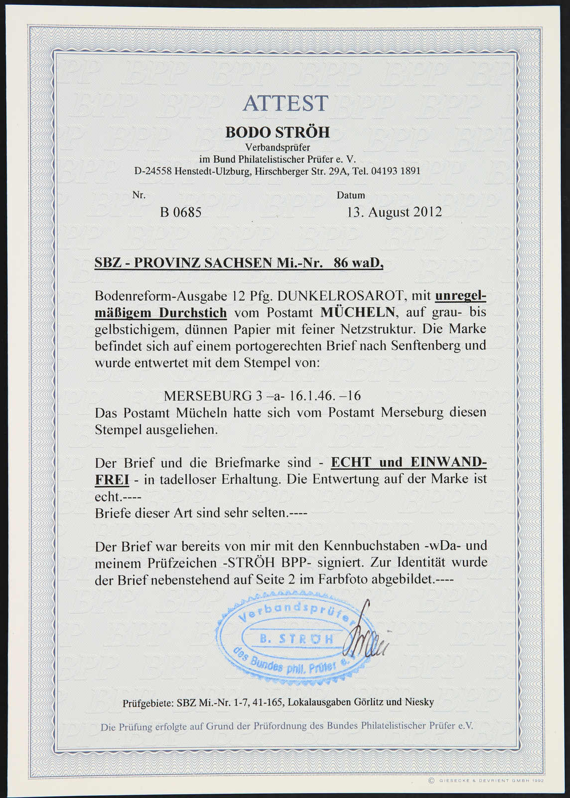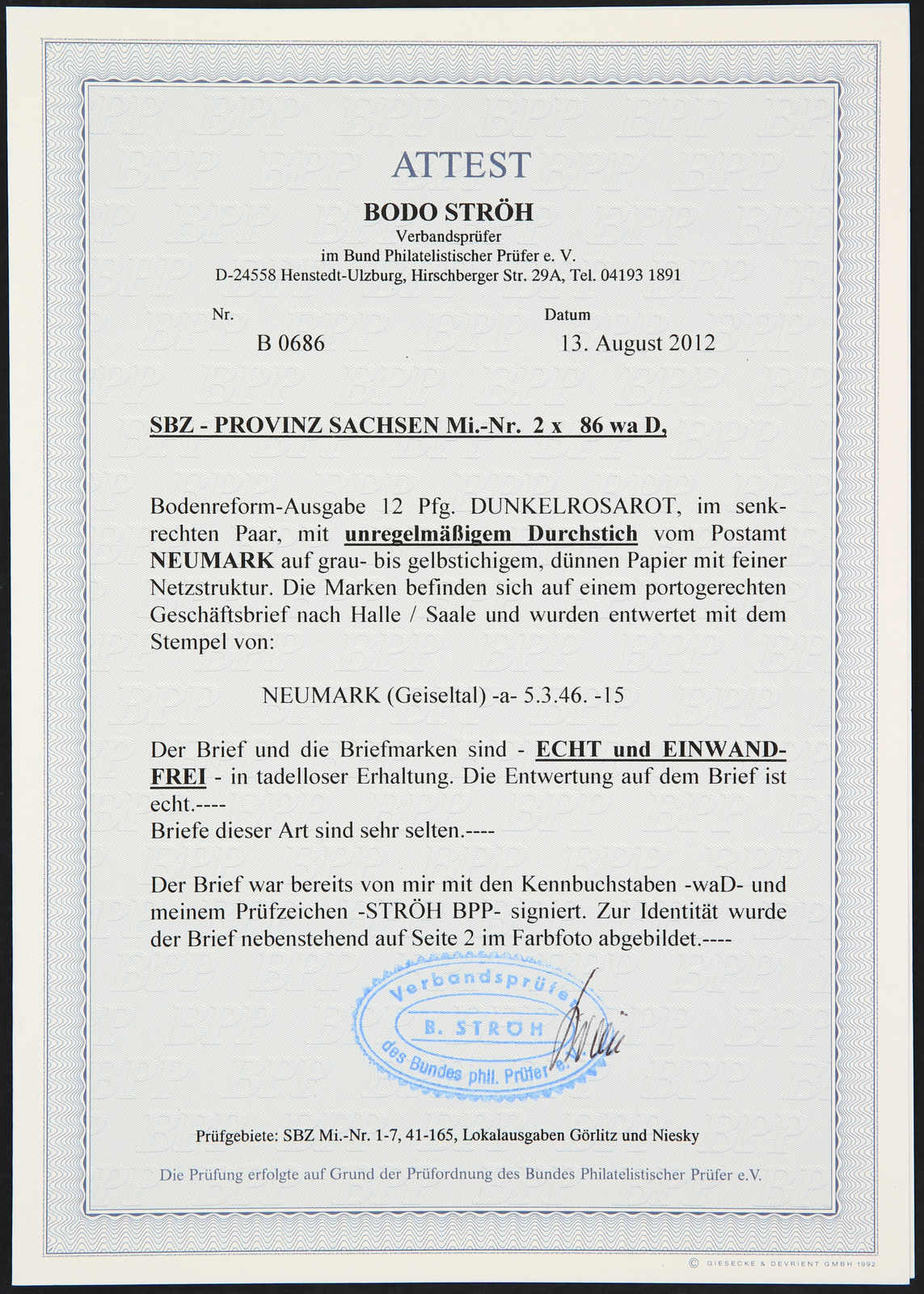 Get Market Data for [Germany (Soviet Occupation Zone) Michel: 86 wa D (2)] Visual Pricing Guide Sample Census