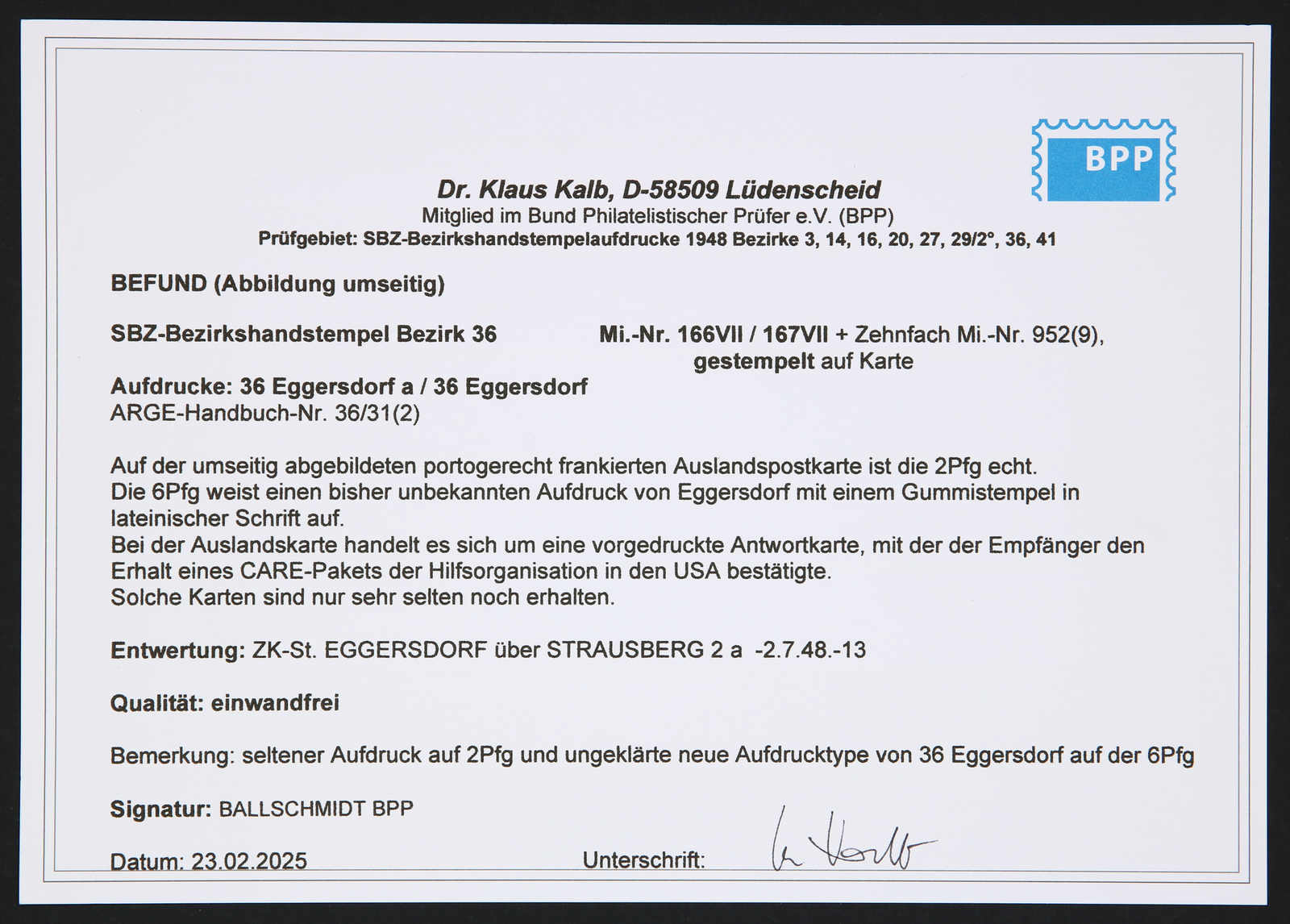Ballschmidt BPP, Kurzbefund Dr. Kalb BPP 02/2025 (Image)