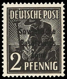 1948, 2 und 6 Pfg. Freimarken mit Bezirksstempelaufdruck "36 Eggersdorf a" auf der 2 Pfg. bzw. mit bisher unbekanntem Gummistempelaufdruck "36 Eggersdorf" in lateinischer Schrift mit einer Zehnfachfrankatur der Kontrollrat Mi-Nr. 952 (9)