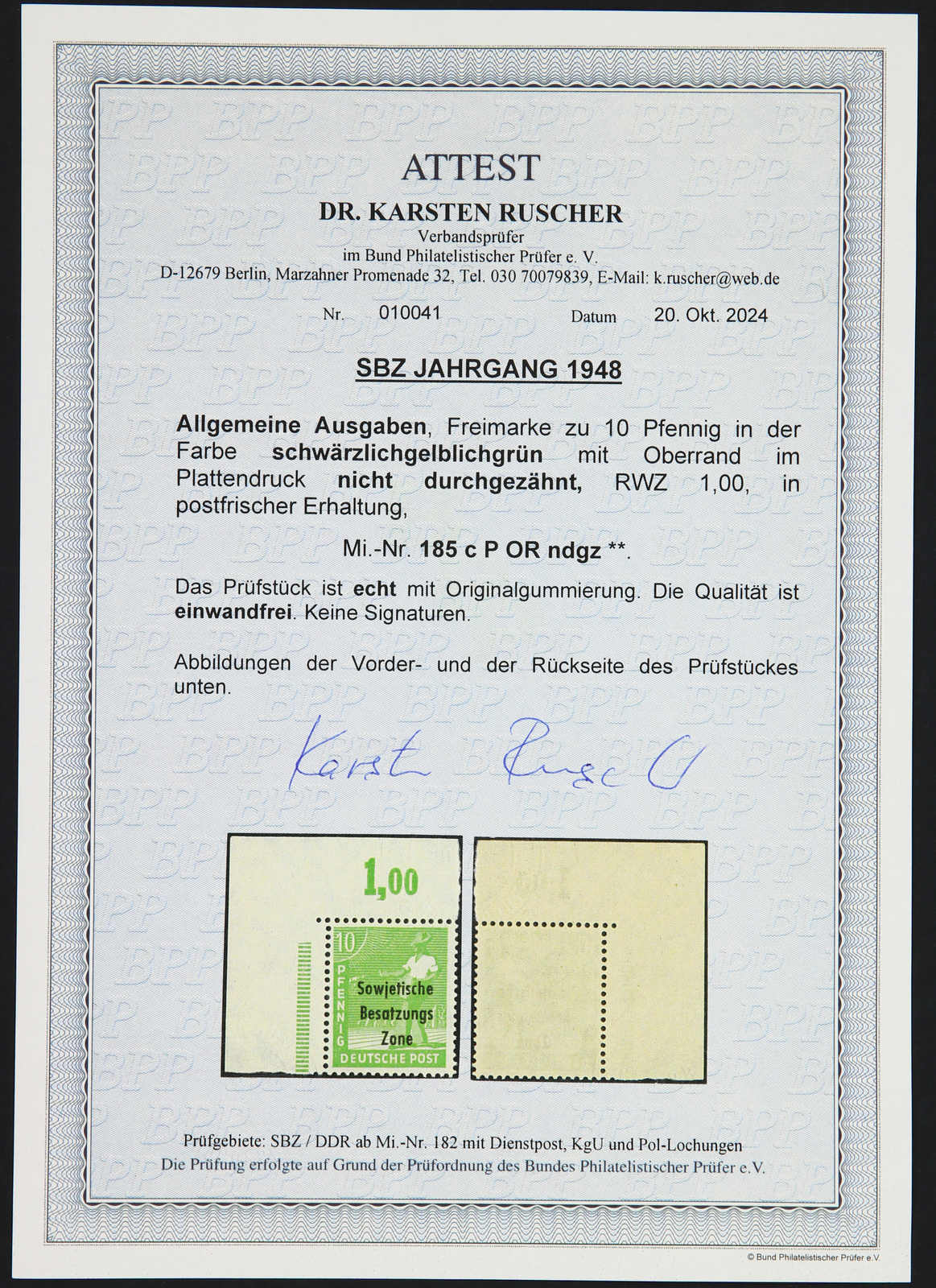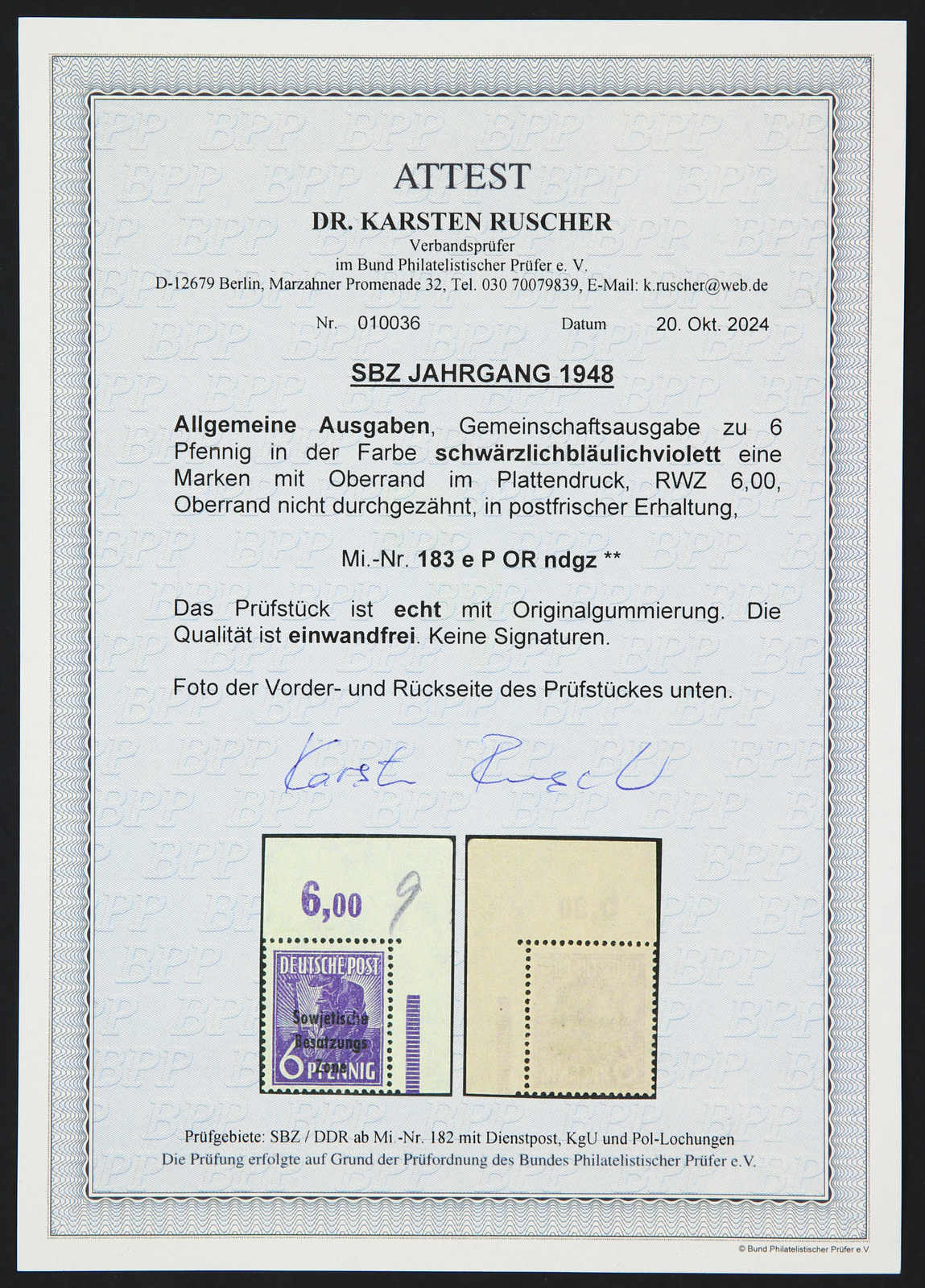 Fotoattest Dr. Ruscher BPP 10/2024 (ME 1.200,-++) (Image)
