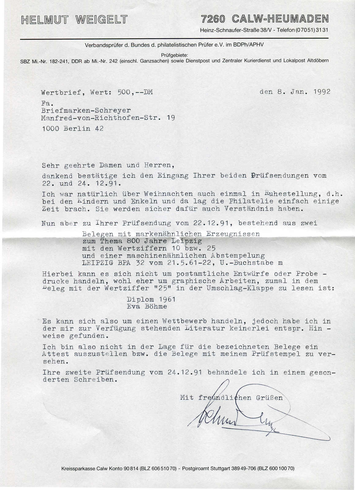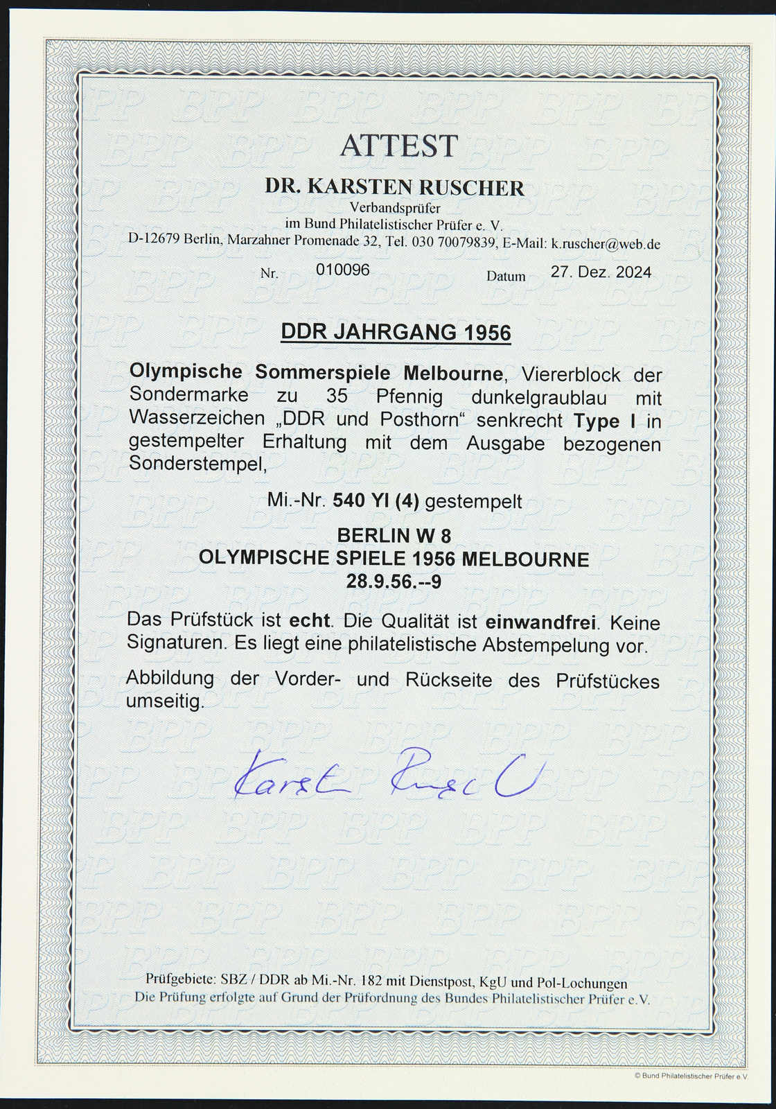 Get Market Data for [Germany Michel: Bl. 10 XII z] Visual Pricing Guide Sample Census