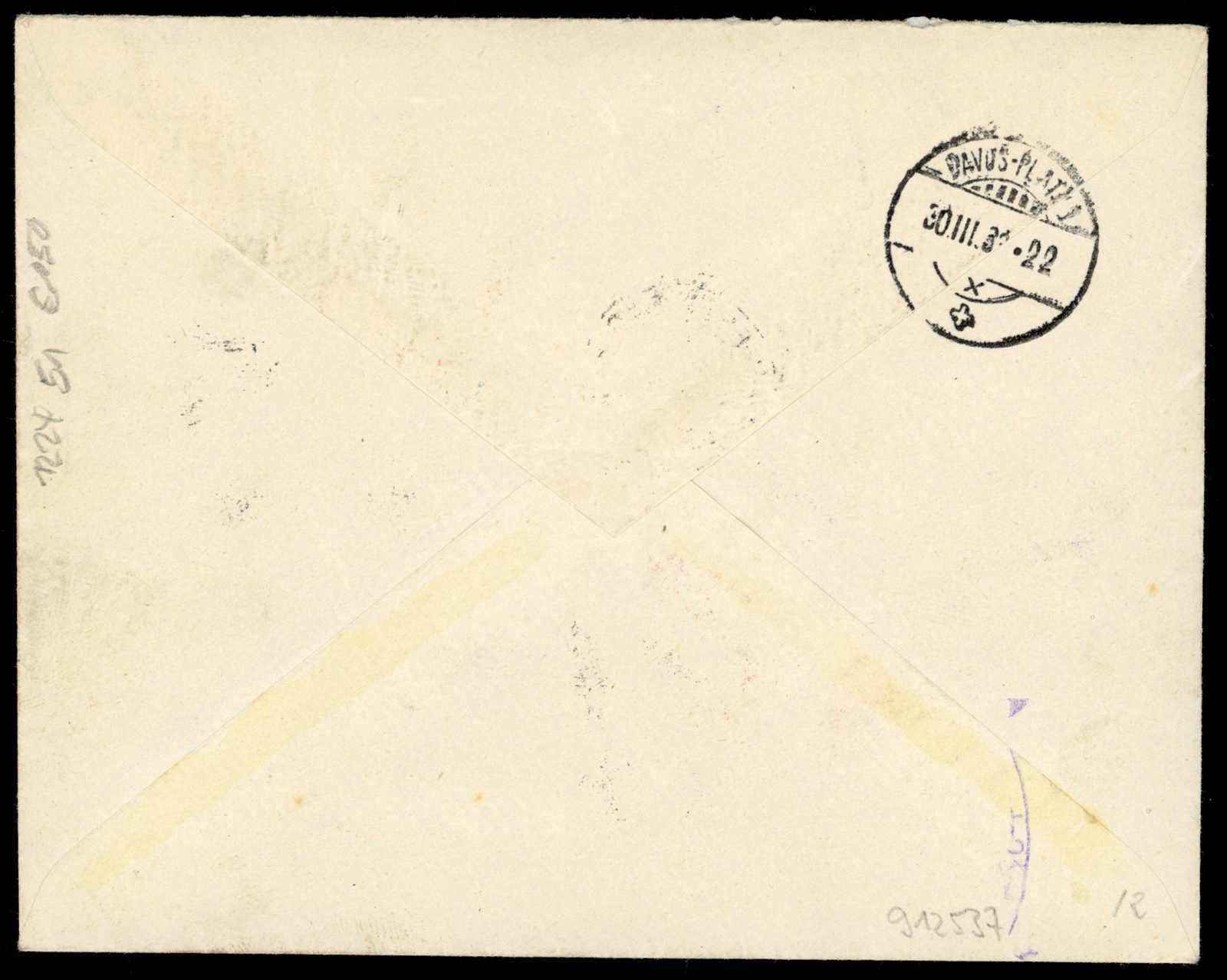 1933, Tourismus- und Verkehrskongress, Brief ab Triesenberg 28.3.33 via Basel 30.3. nach Zürich 30.3., adressiert nach Davos, SLH: SF 33 a FL