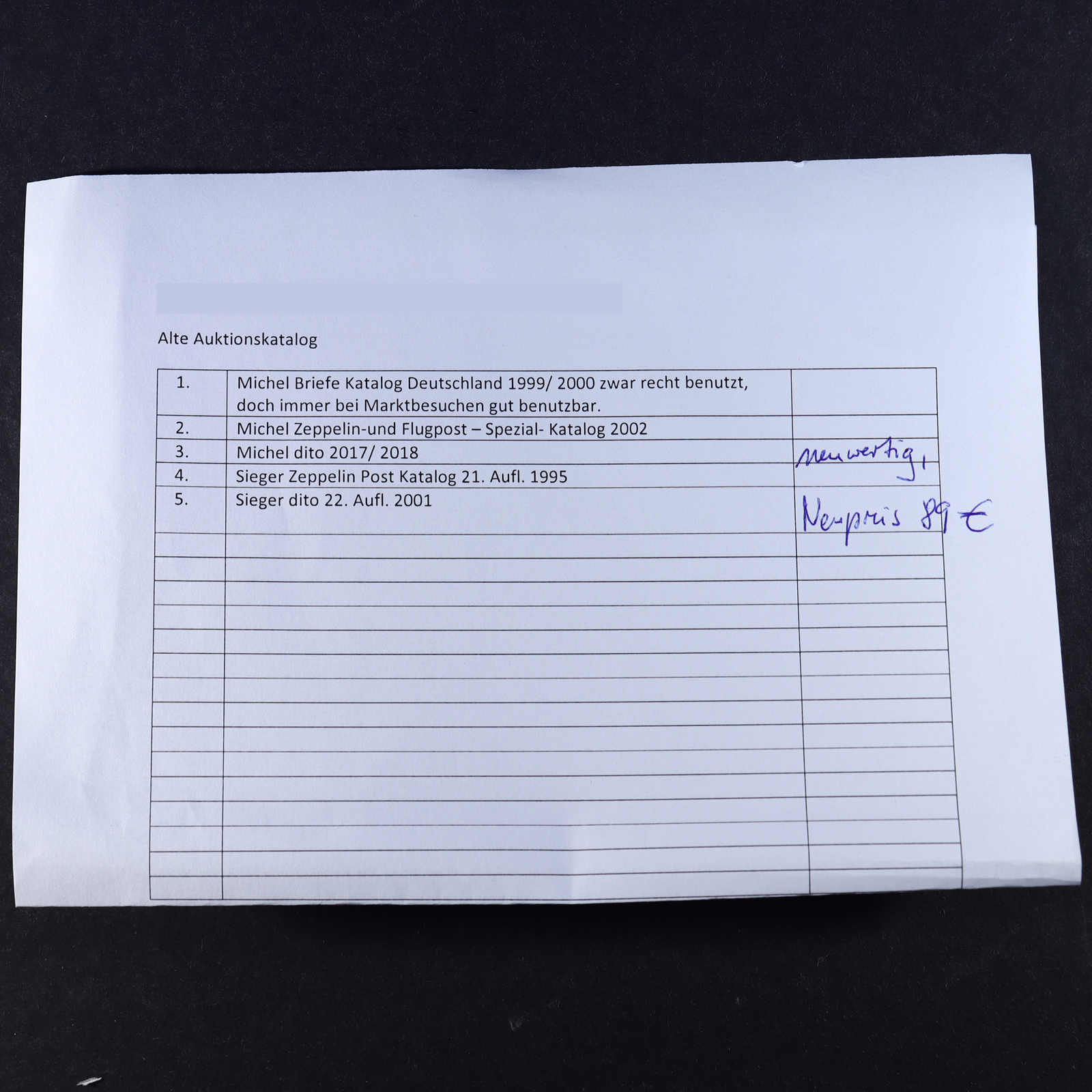 Literaturkonvolut, 5 Kataloge: Michel Zeppelin- und Flugpost Spezial 3. Auflage, Auflage 2002, Sieger Zeppelin Postkatalog 21. und 22. Auflage, Michel Briefe-Katalog Deutschland 1999/2000 (Image)